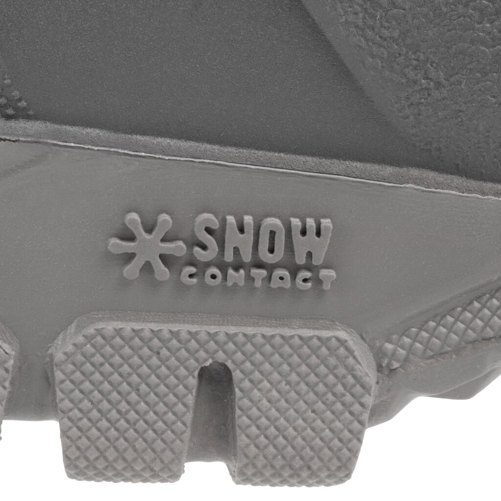 Οι μπότες σας, που διαθέτουν σόλες SNOWCONTACT, σχεδιάστηκαν για μέγιστη άνεση όσον αφορά την πρόσφυση για πεζοπορία και το κράτημα στο χιόνι. Οι αυλακώσεις και οι τάπες (5 mm) είναι στρατηγικά τοποθετημένες για βέλτιστη πρόσφυση όταν κάνετε πεζοπορία στο χιόνι. Η επιφάνεια και το σχέδιο με αυλακώσεις που σχηματίζουν οι τάπες έχουν σχεδιαστεί για να ταιριάζουν απόλυτα σε επιφάνειες με σκληρό χιόνι και να διώχνουν το περιττό νερό για να μην γλιστράτε.