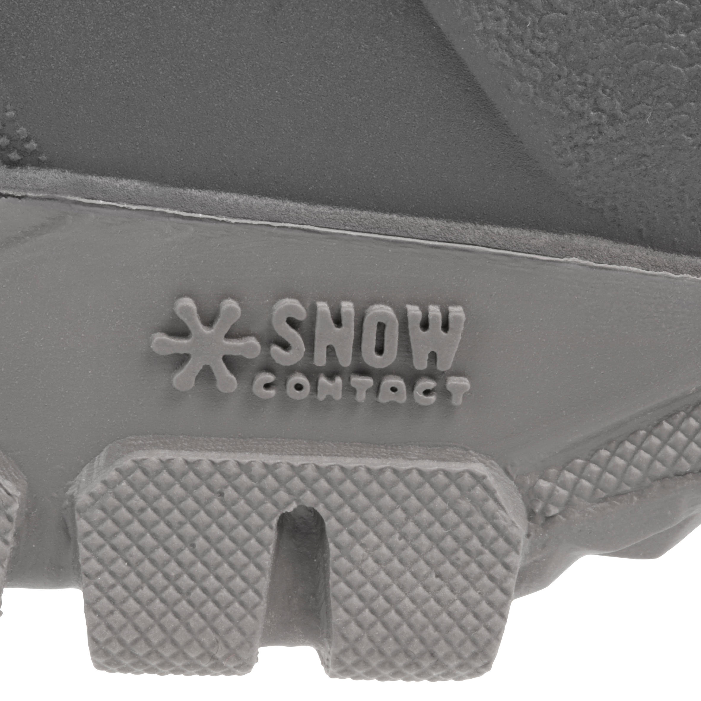Οι σόλες SNOWCONTACT σχεδιάζονται με χρήση ειδικού συστατικού στοιχείου και σχήμα ταπών με σκοπό να σας παρέχουν βέλτιστο κράτημα και πρόσφυση. Οι σόλες SNOWCONTACT είναι πιο αποτελεσματικές στο χιόνι από τις παραδοσιακές σόλες. Όταν περπατάτε στον πάγο, ο μόνος τρόπος για να εξασφαλίσετε μέγιστη ασφάλεια είναι να ενισχύσετε το αντιολισθητικό κράτημα που έχουν οι μπότες σας.