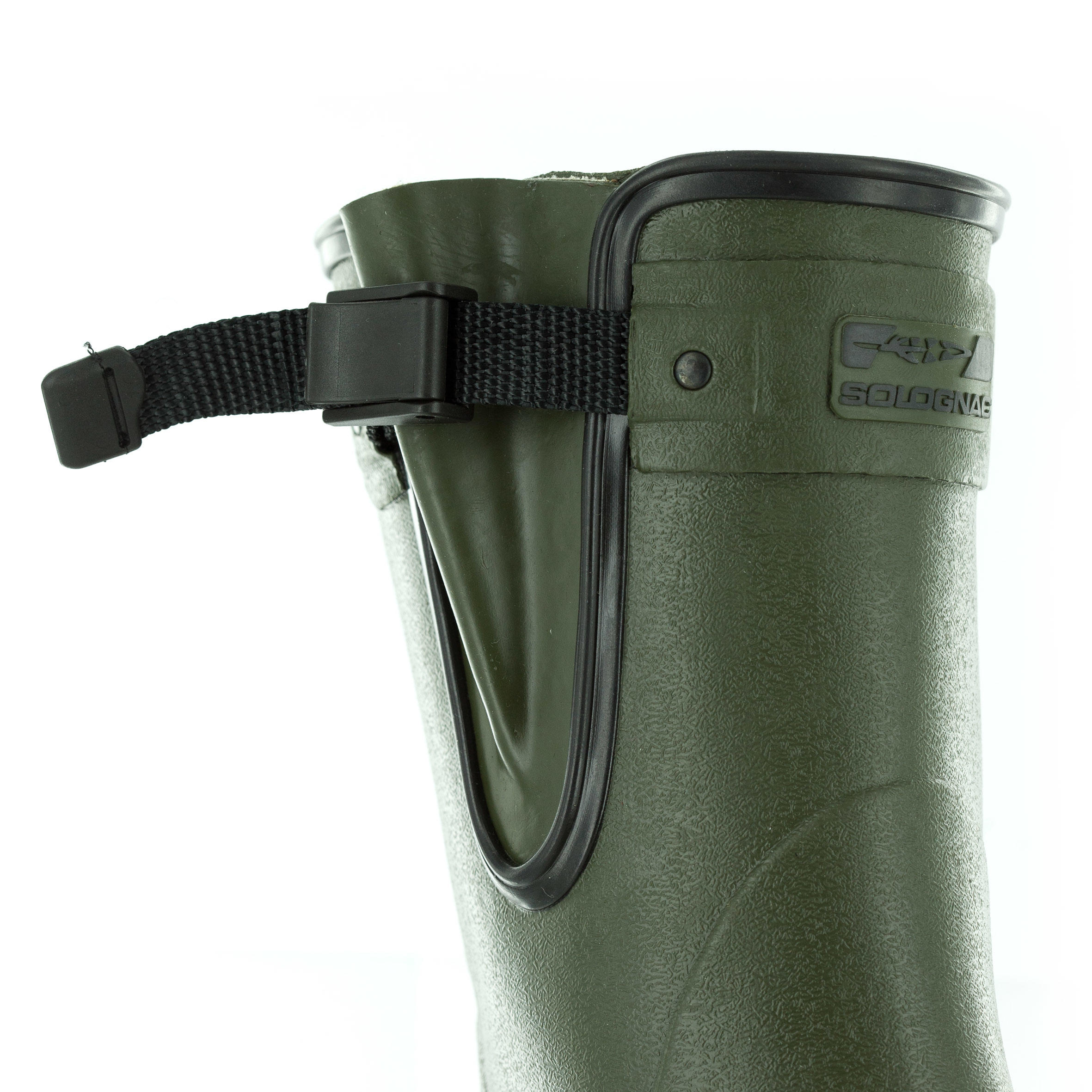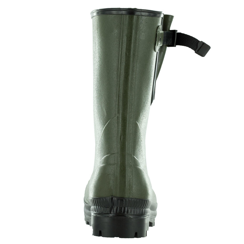 Instep and upper made of multi-layered rubber. 100% rubber sole.