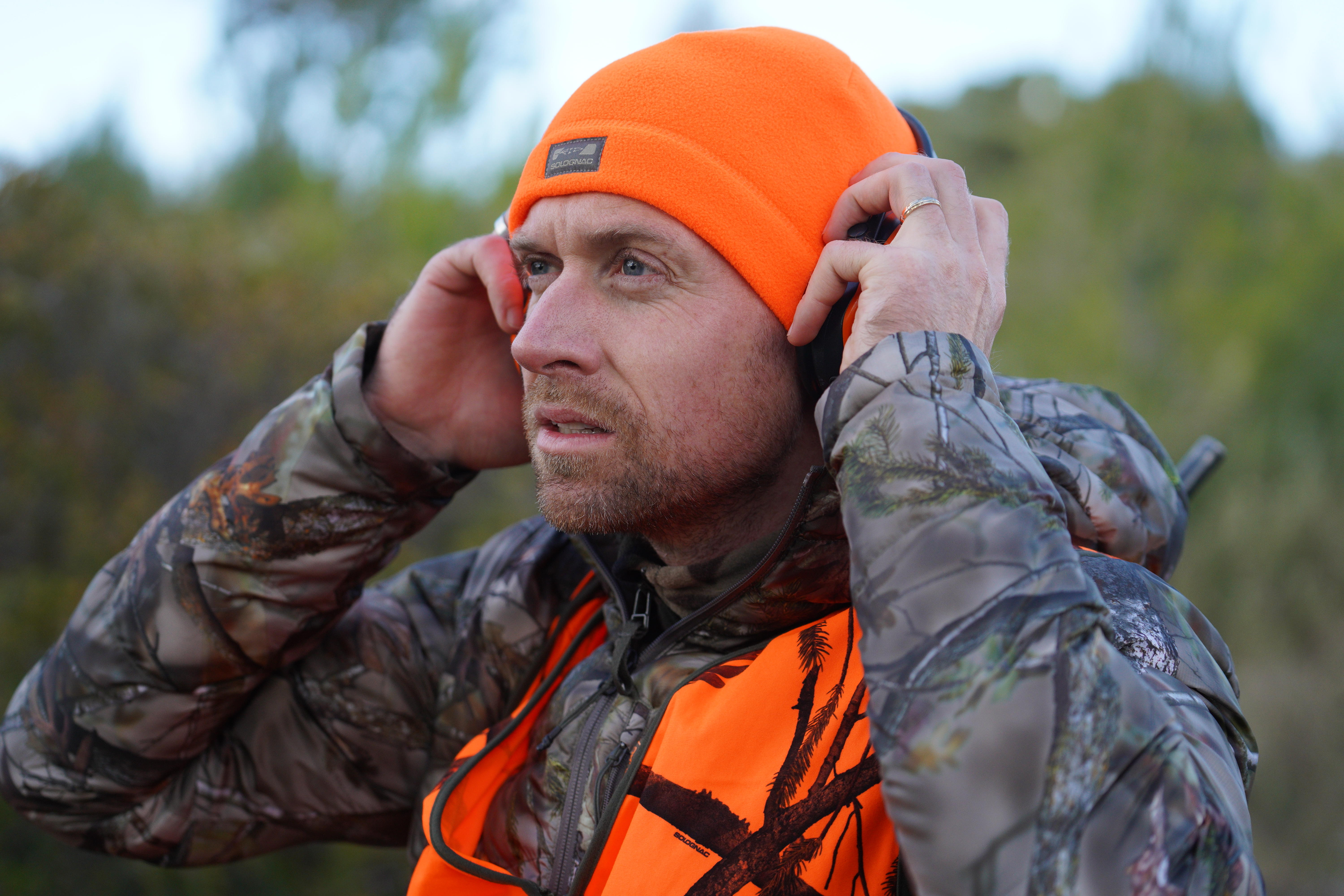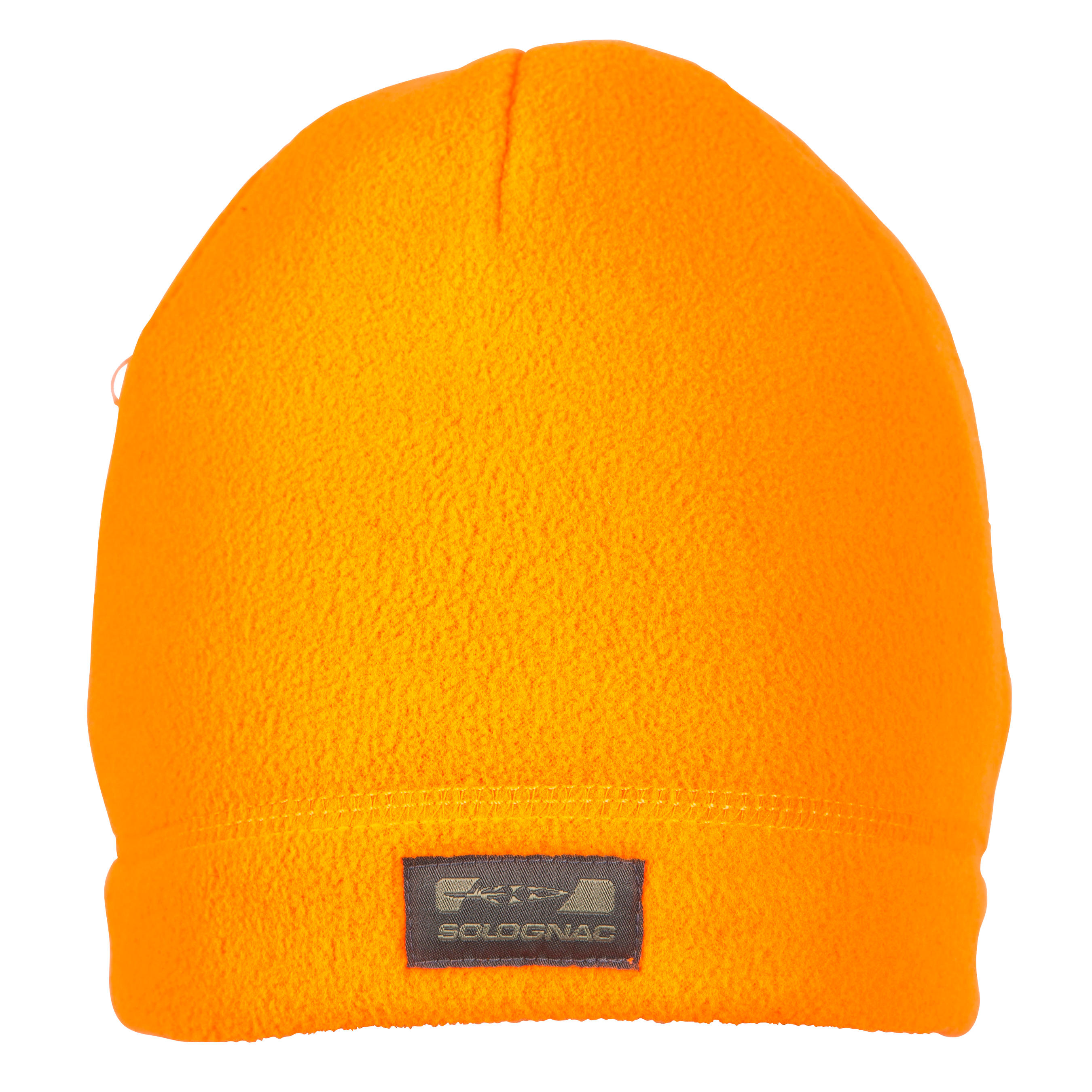 Πορτοκαλί καπέλο fleece που προστατεύει το κεφάλι σας από το κρύο.