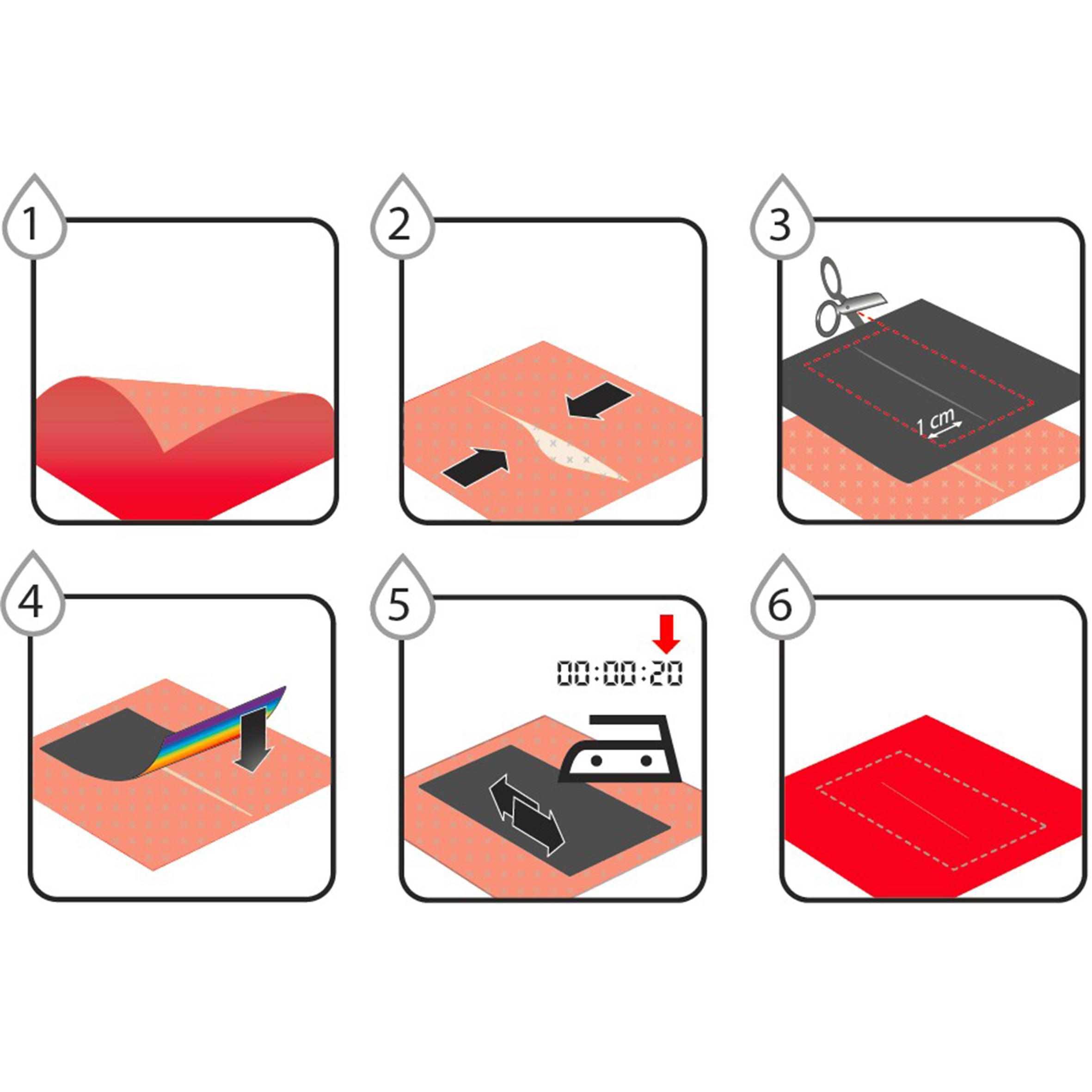 Cut out the component and stick down using an iron for 20 seconds