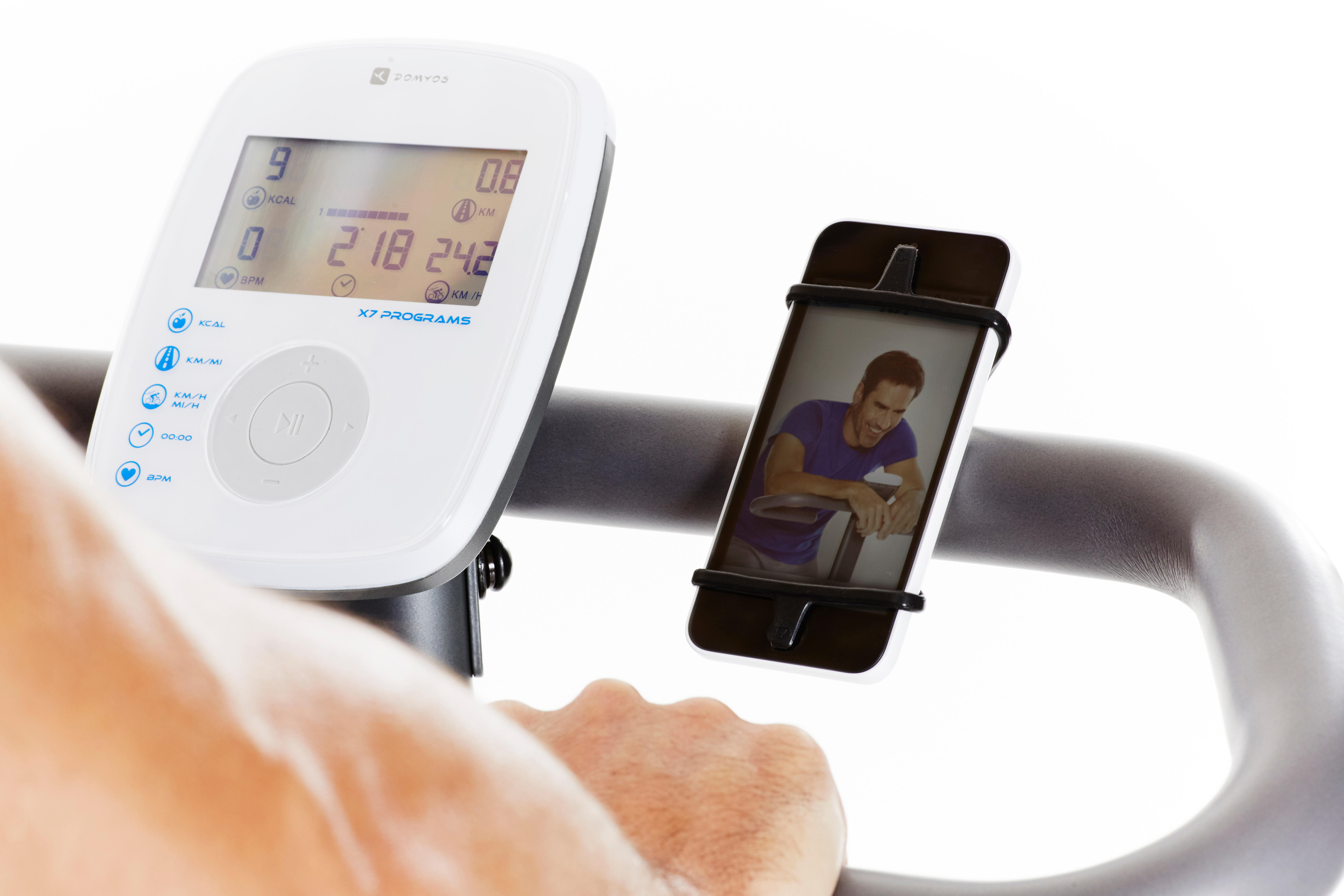 Stay connected while doing sport! This holder fits all smartphones, exercise bikes and cross trainers.