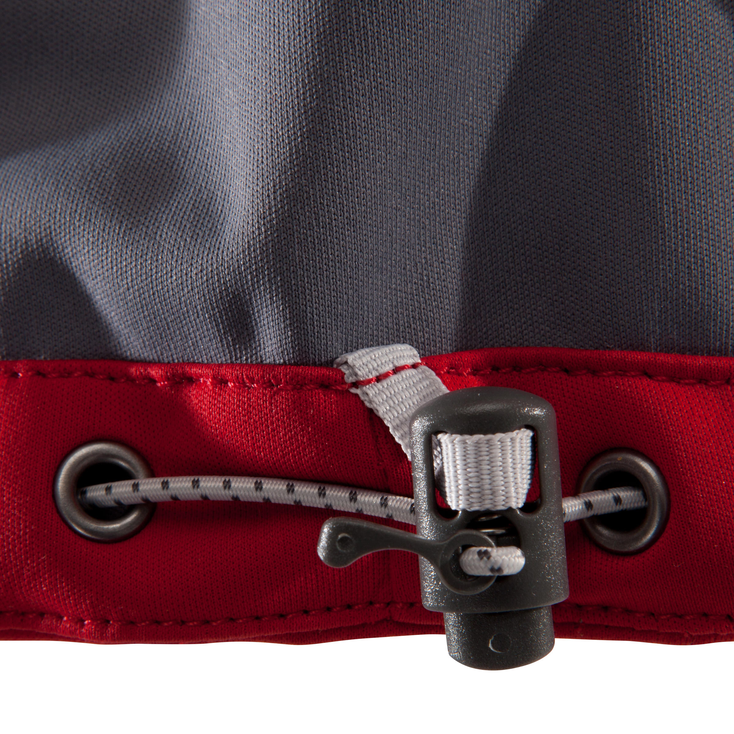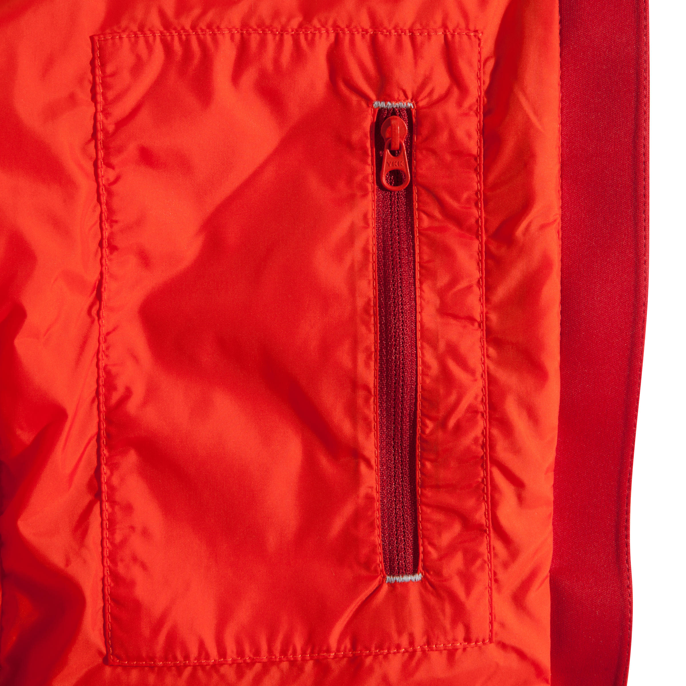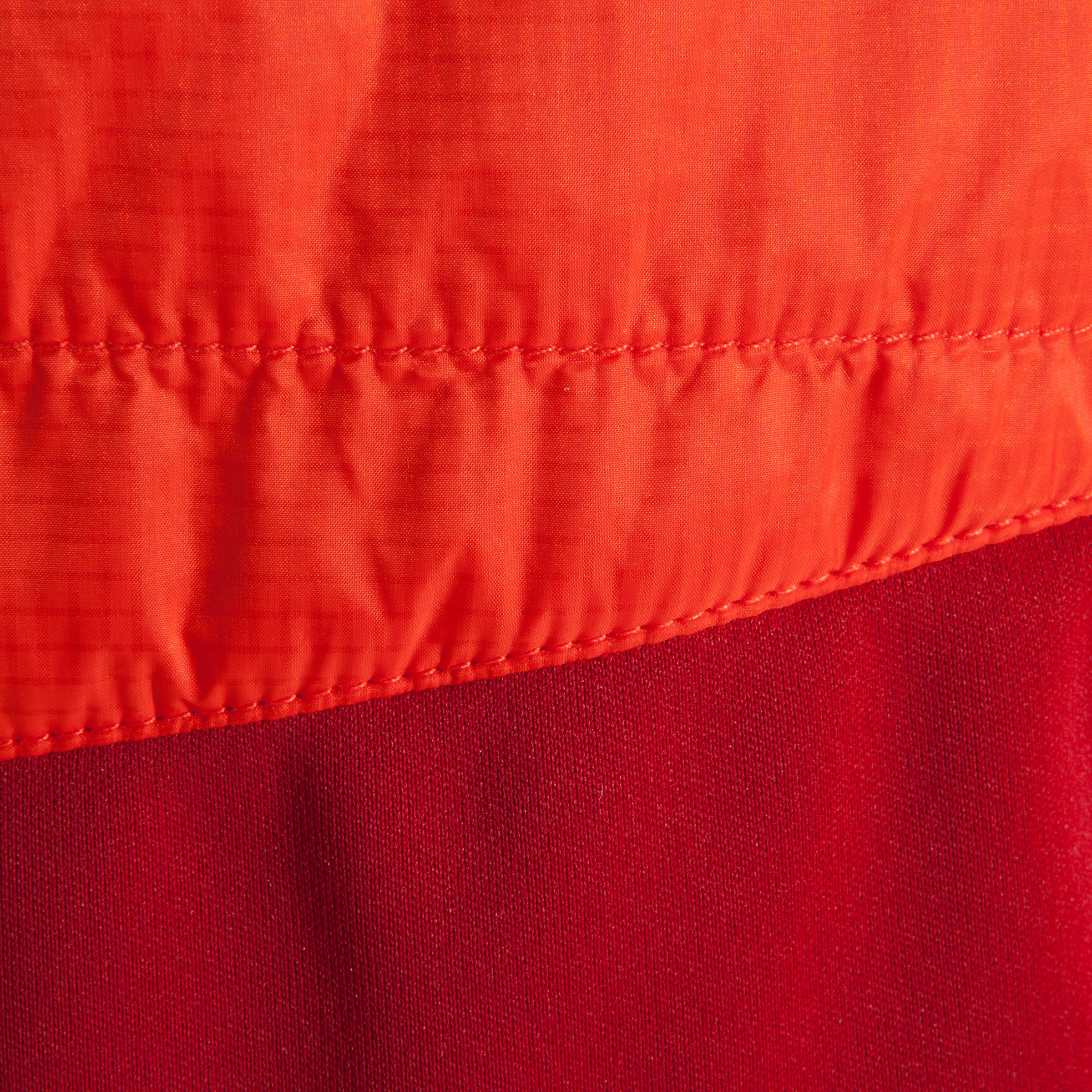 Hybrid jacket made from several materials: filling / softshell stretch / fleece. These fabrics are used in inserts in targeted areas. Scarf built into hood for wind protection