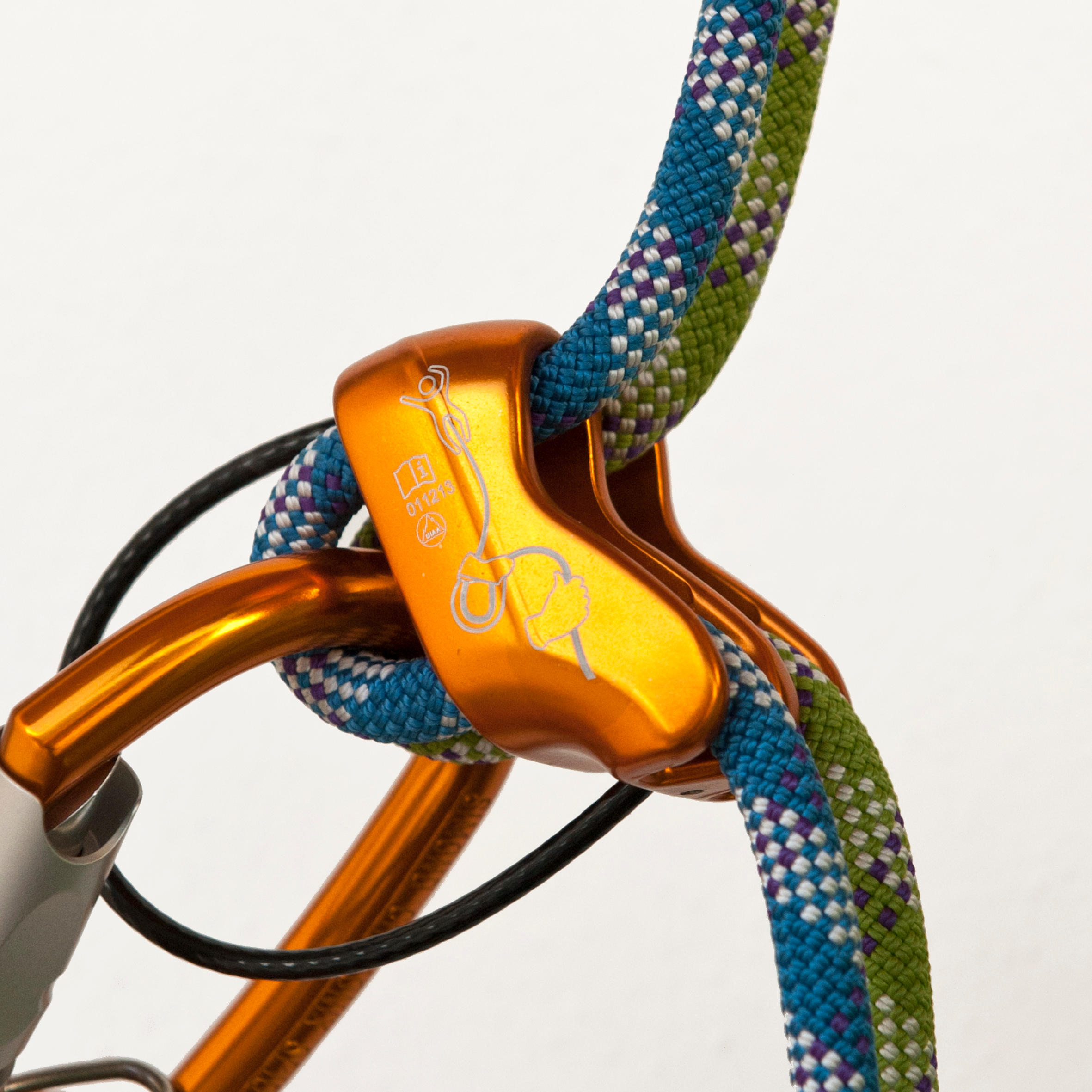 Διάταξη ασφάλισης-ραπέλ για αναρρίχηση, άνετη κάθοδος χάρη στις εσοχές σε V.