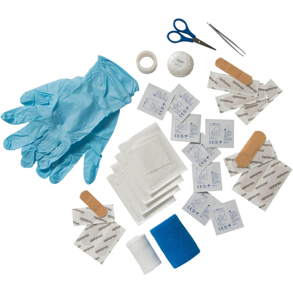Το κουτί περιλαμβάνει προϊόντα για την περιποίηση μικρών τραυμάτων ή για την κατασκευή νάρθηκα για την ακινητοποίηση διαστρέμματος. Διαθέτει αρκετό χώρο για να προσθέσετε τα δικά σας αντικείμενα.