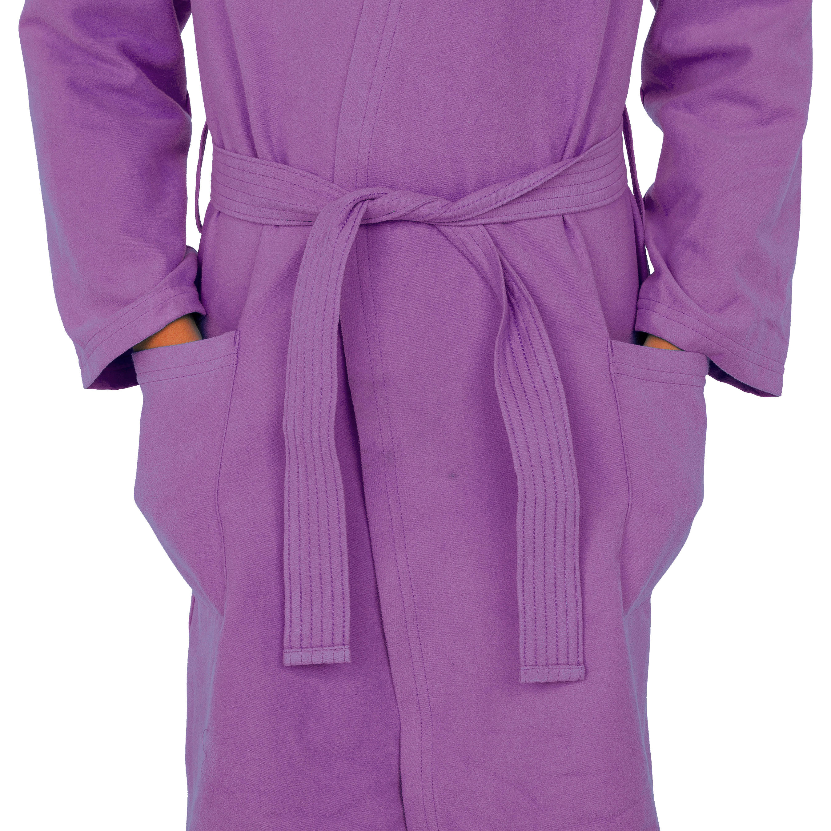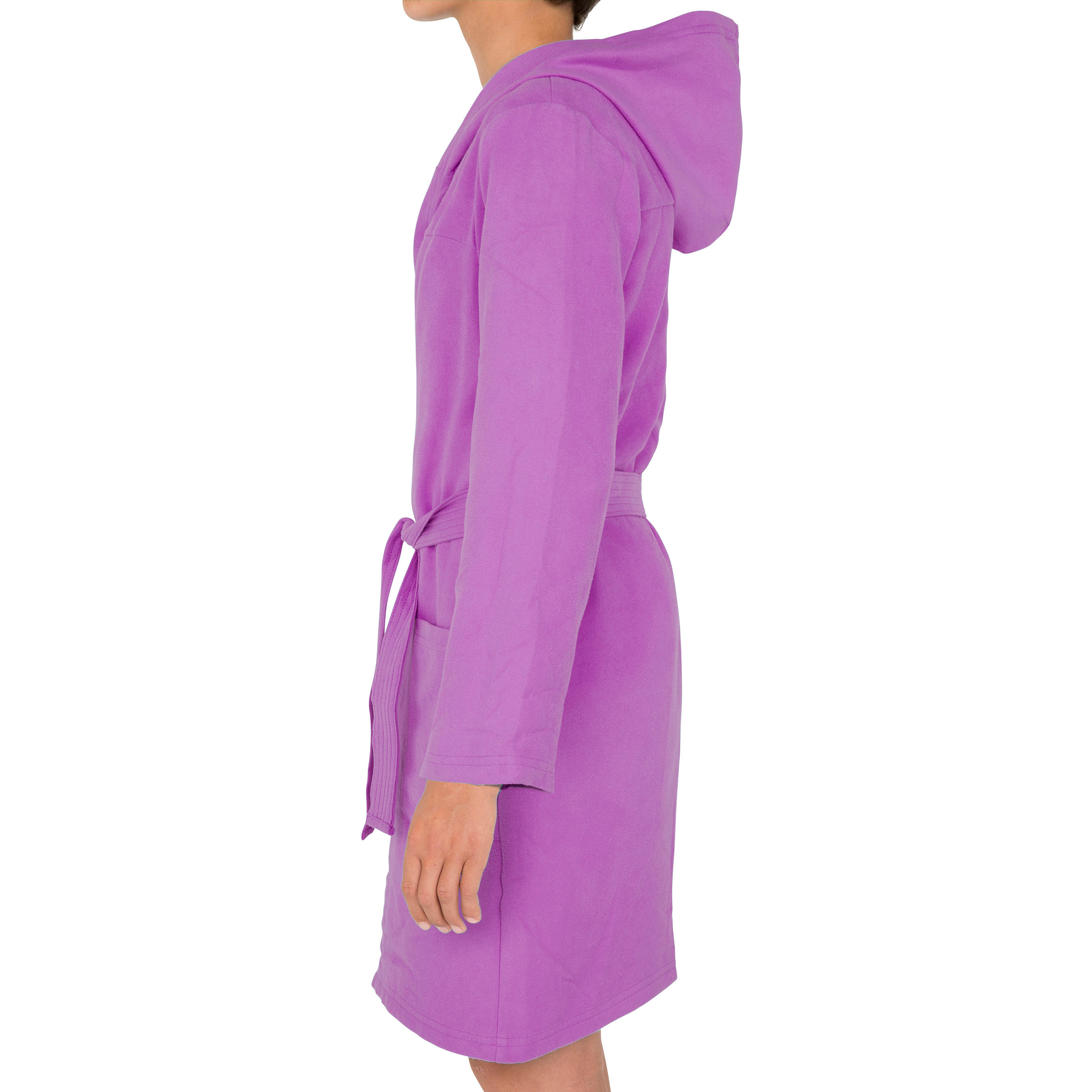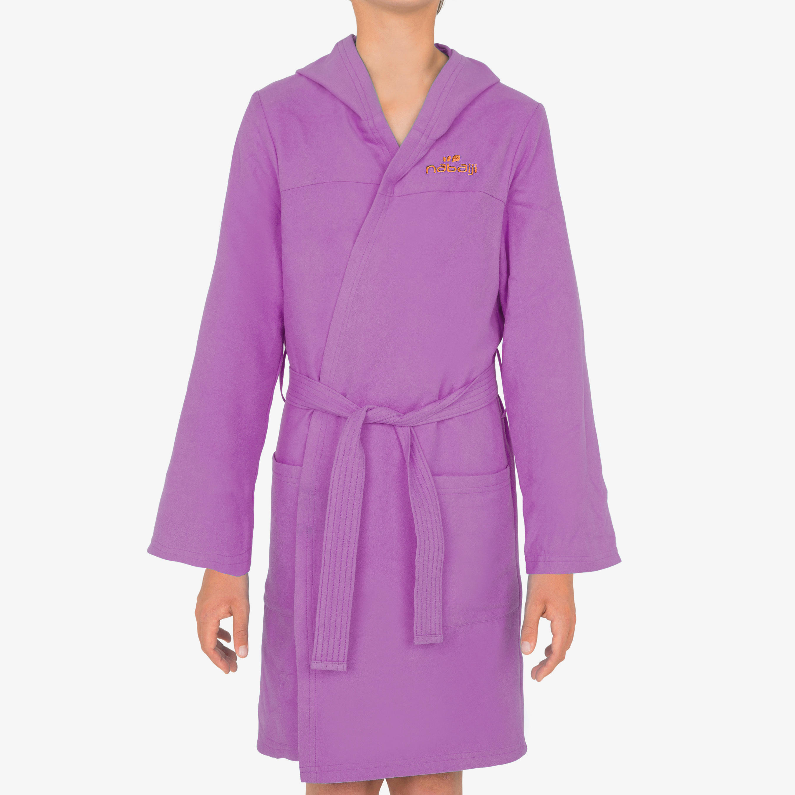 Βιολετί παιδικό μπουρνούζι πισίνας από μικροΐνες με κουκούλα, τσέπες και ζώνη