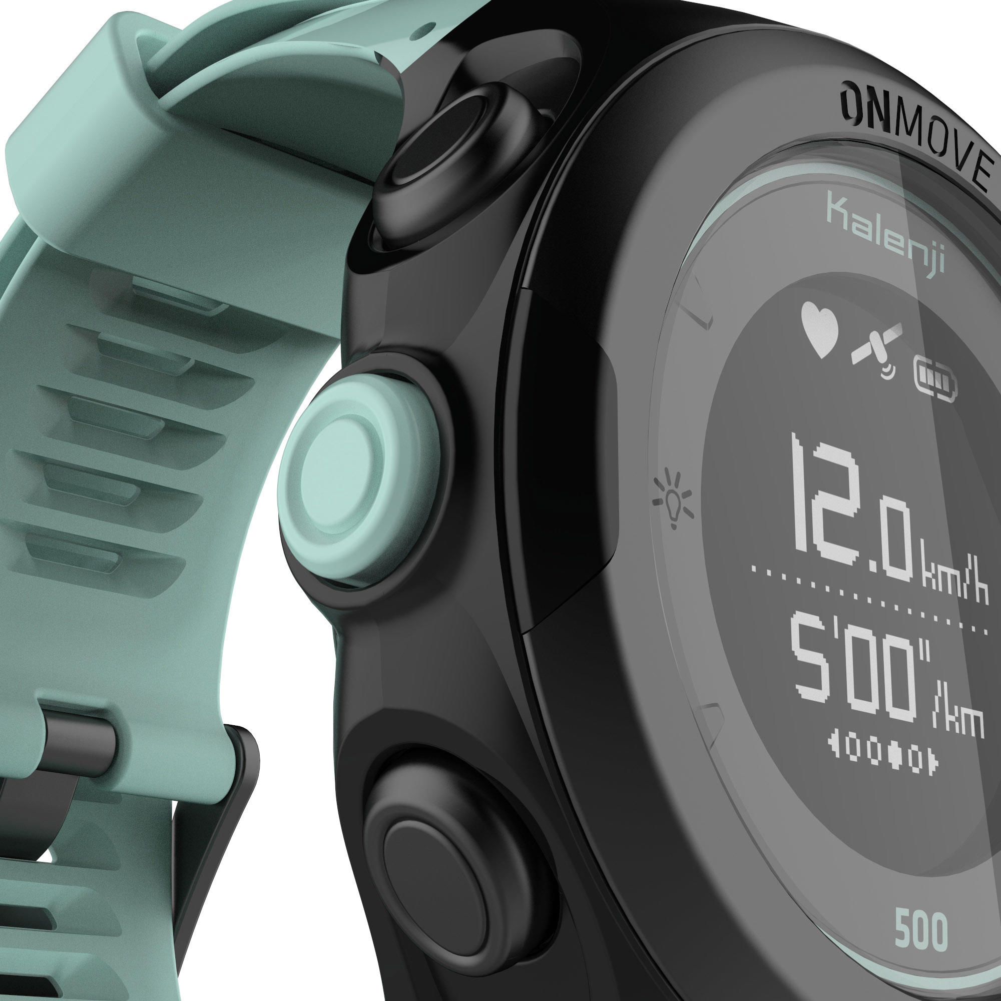 Το ρολόι χειρός ONmove 500 με GPS είναι επίσης συμβατό με τη ζώνη καρδιακών παλμών DUAL Bluetooth Smart Geonaute, γεγονός που σας βοηθά να μετράτε τους καρδιακούς παλμούς σας και να ορίζετε το ανώτατο όριο παλμών ανά λεπτό.