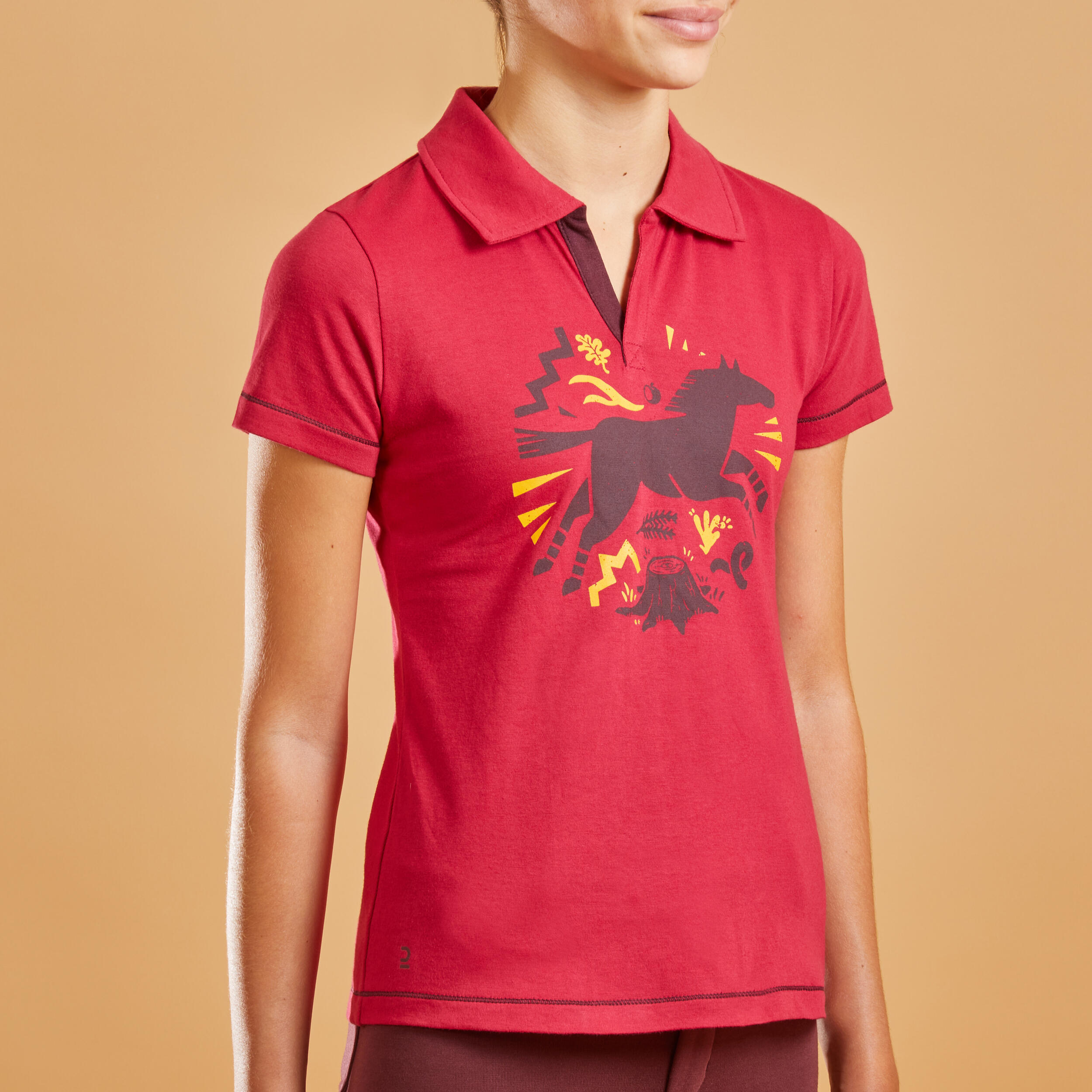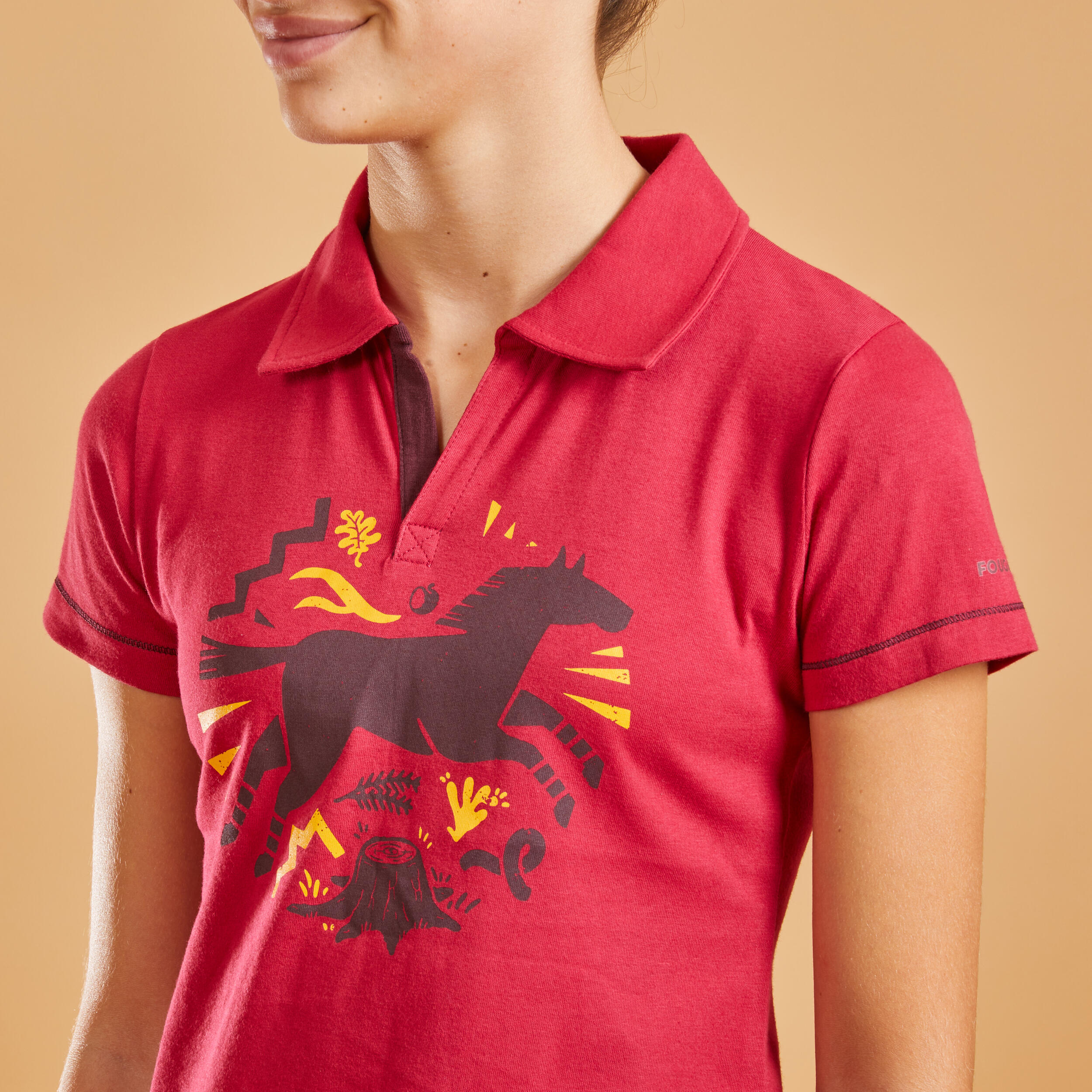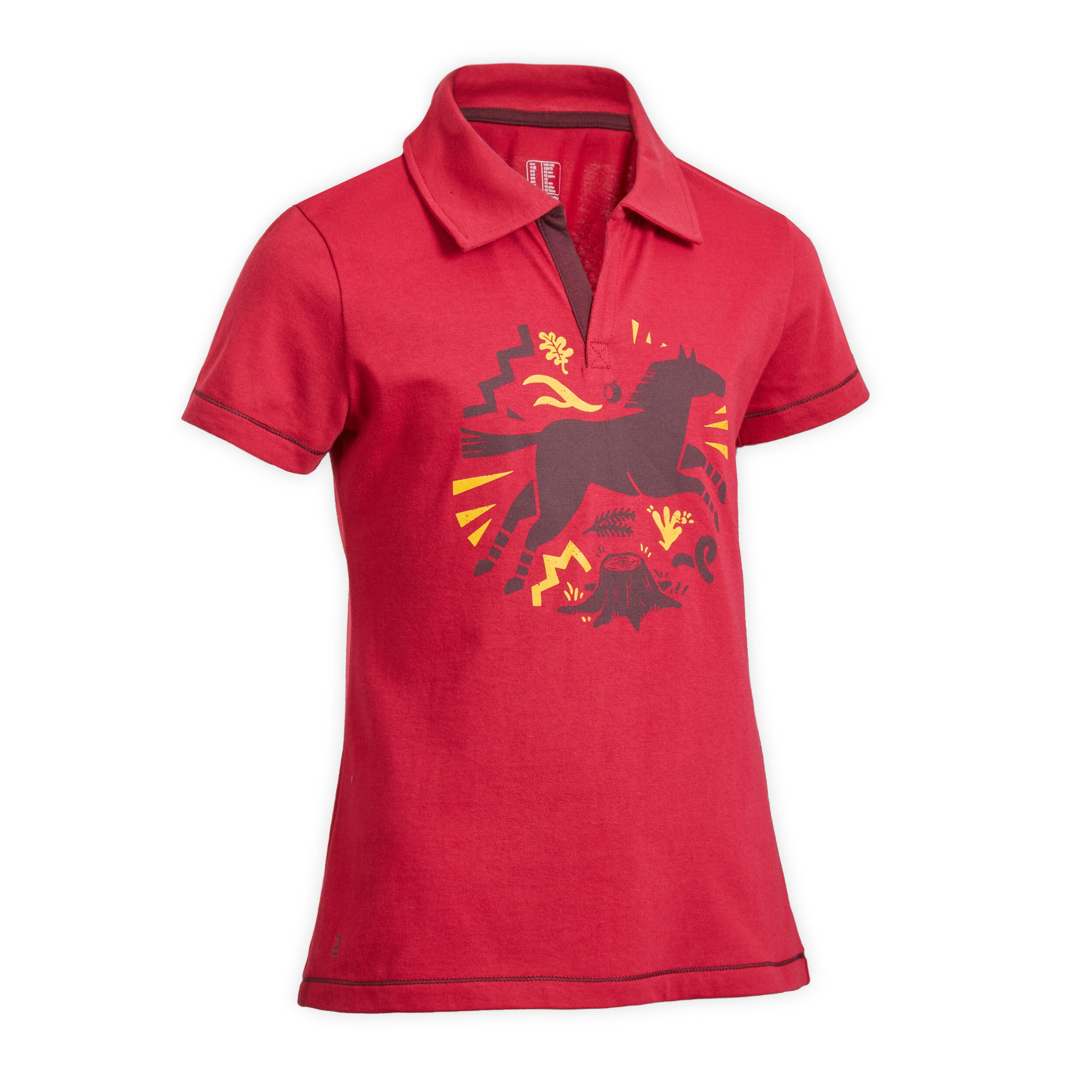 Η πολύ άνετη μπλούζα polo 100 ακολουθεί τις κινήσεις σας κατά την ιππασία, ενώ καλύπτει την πλάτη σας. Διαθέτει έναν πολύ κομψό γιακά και ραφές και ένα σχέδιο που οι νεαρές λάτρεις της ιππασίας θα λατρέψουν!