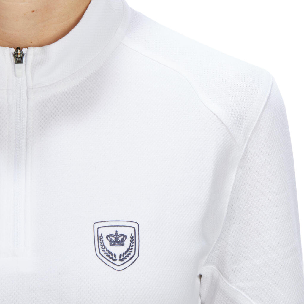 Our 500 Horseback Riding competition polo shirt is light and comfy. The fabric is very stretchy and follows your movements. The zip-up collar can be worn open or closed! Small embroidery at the chest.
