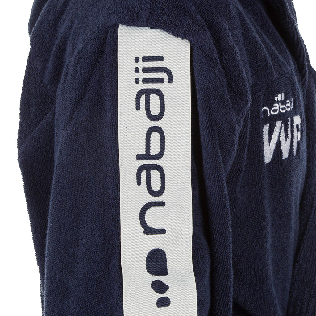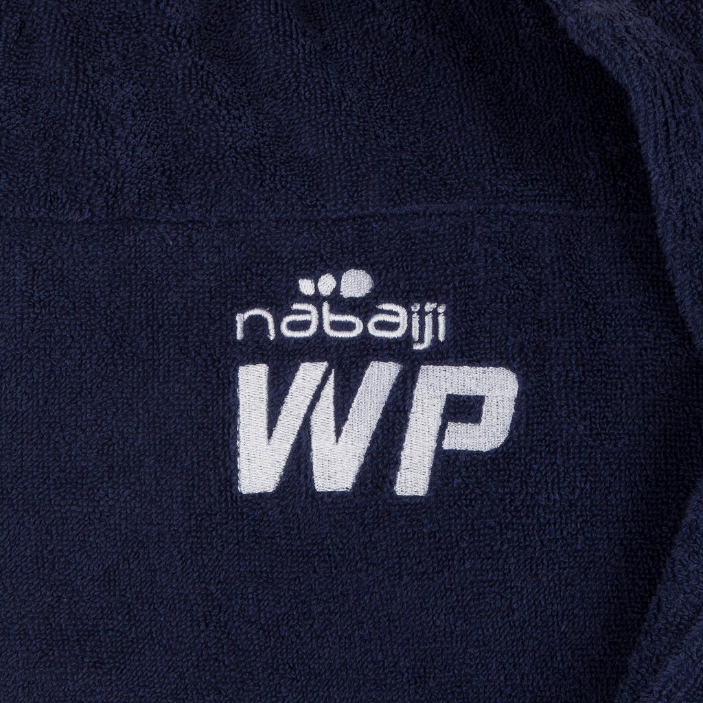 Επιλέξαμε ένα παχύ βαμβακερό ύφασμα υψηλής ποιότητας για αυτό το μπουρνούζι water polo. Οι χρήστες του θα λατρέψουν τη ζεστασιά και την άνεσή του. Πλεονέκτημα: το βαμβάκι μας καλλιεργείται βιολογικά.