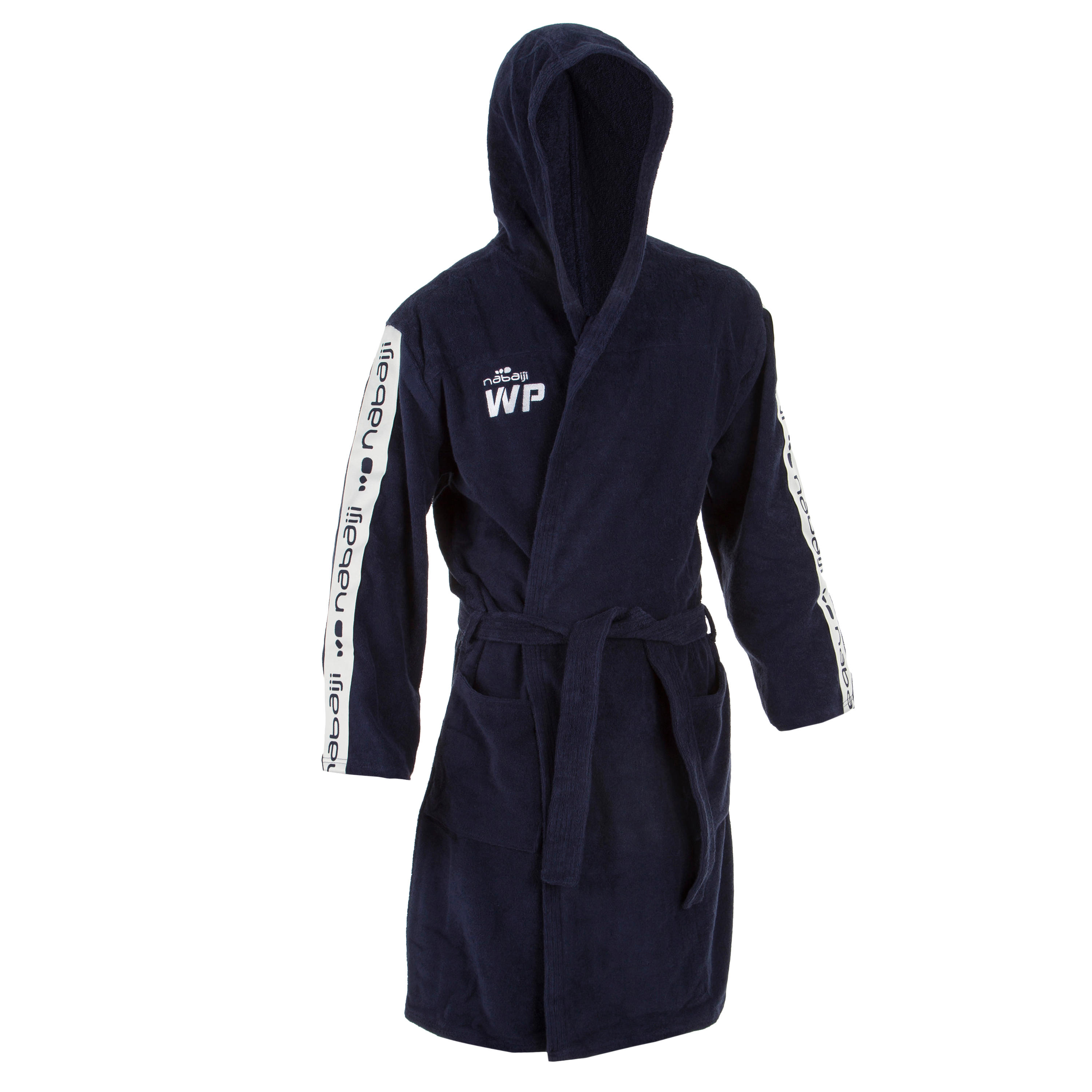 Βαμβακερό μαύρο ανδρικό μπουρνούζι υδατοσφαίρισης 500 με ζώνη, τσέπες & κουκούλα