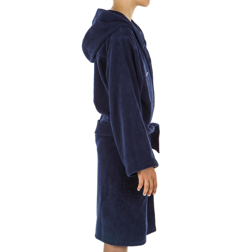 Παιδικό χοντρό βαμβακερό μπουρνούζι πισίνας για υδατοσφαίριση - μπλε μαρέν