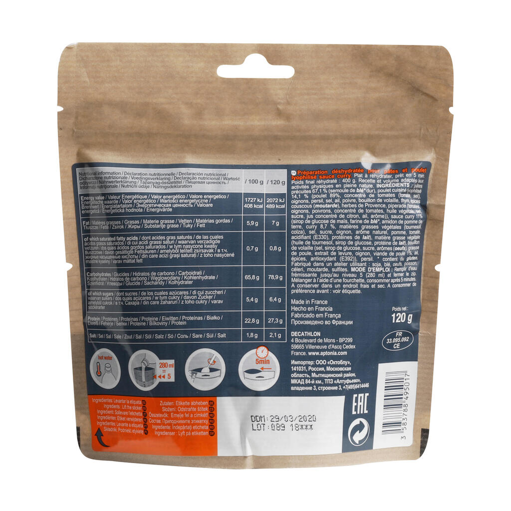 408 kCal energy in 100 g (dehydrated weight). Final rehydrated weight: 400 g.