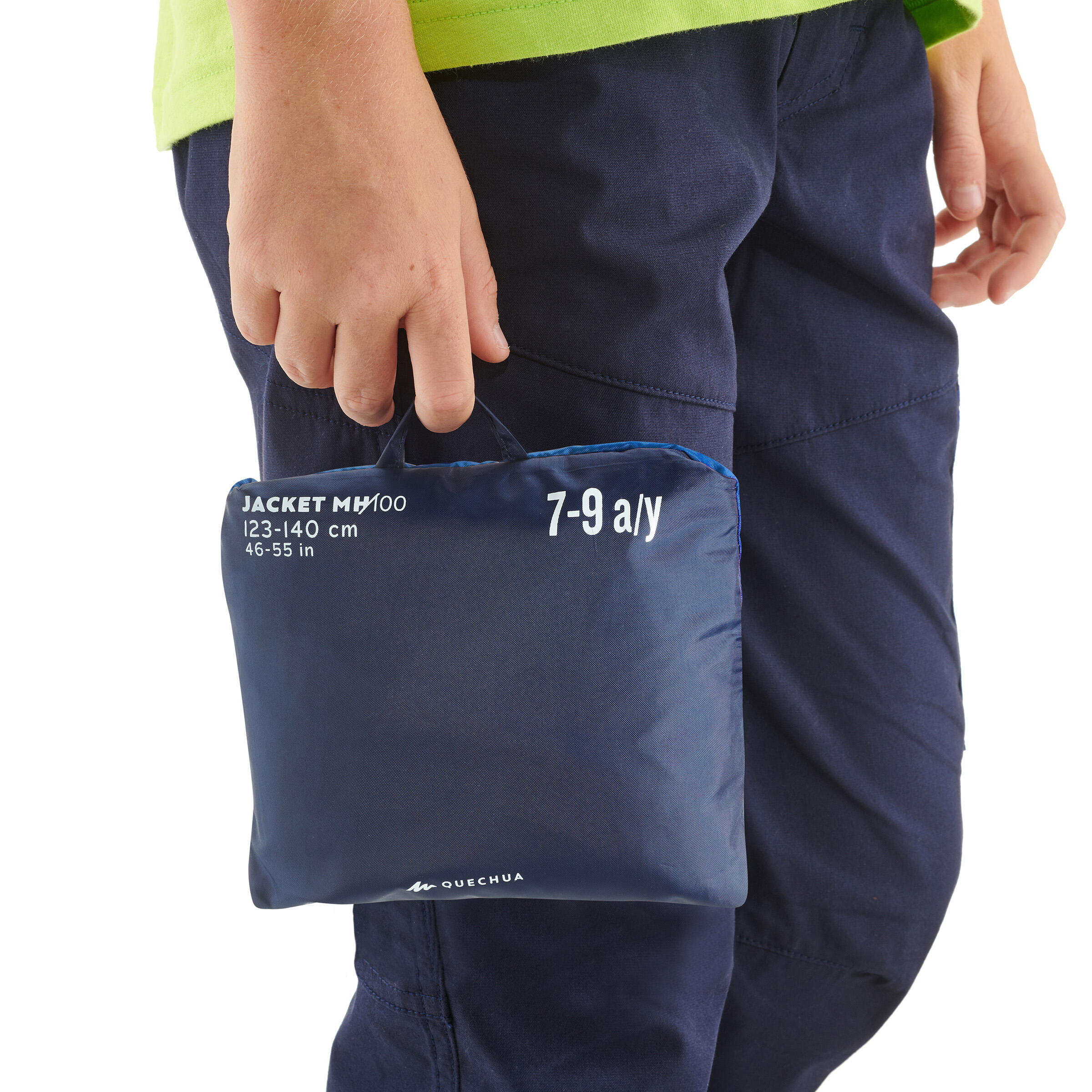 Το απαραίτητο αξεσουάρ όταν παίρνετε μαζί σας τα παιδιά για πεζοπορία! Διπλωμένο μέσα στην πολύ μικρή τσέπη του, αυτό το αδιάβροχο μπουφάν MH100 θα προστατεύσει το παιδί σας από οποιονδήποτε καιρό!