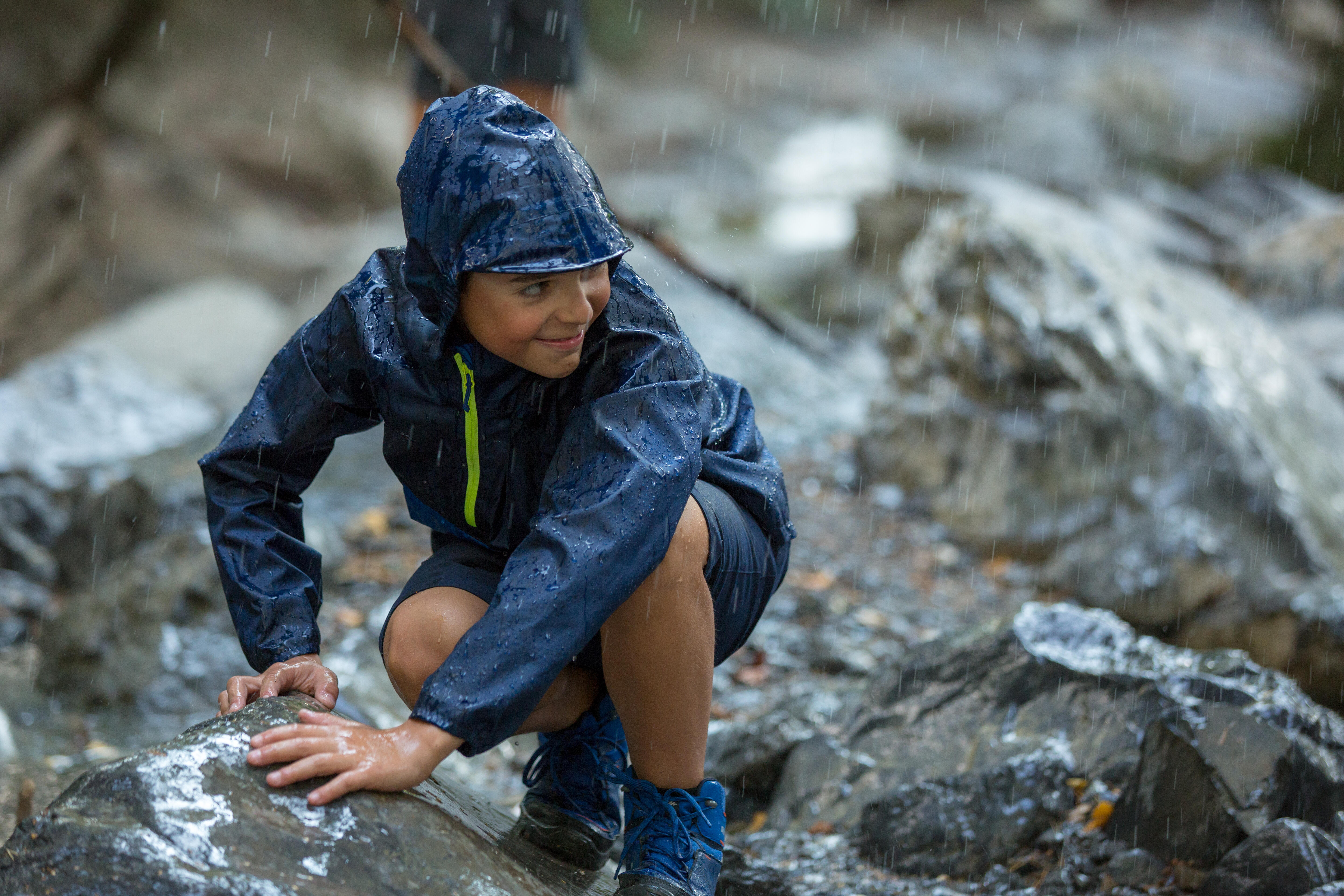 Οι σχεδιαστές μας έχουν φτιάξει αυτό το αδιάβροχο μπουφάν MH100 για την προστασία του παιδιού σας από τη βροχή ή τον αέρα στα βουνά!