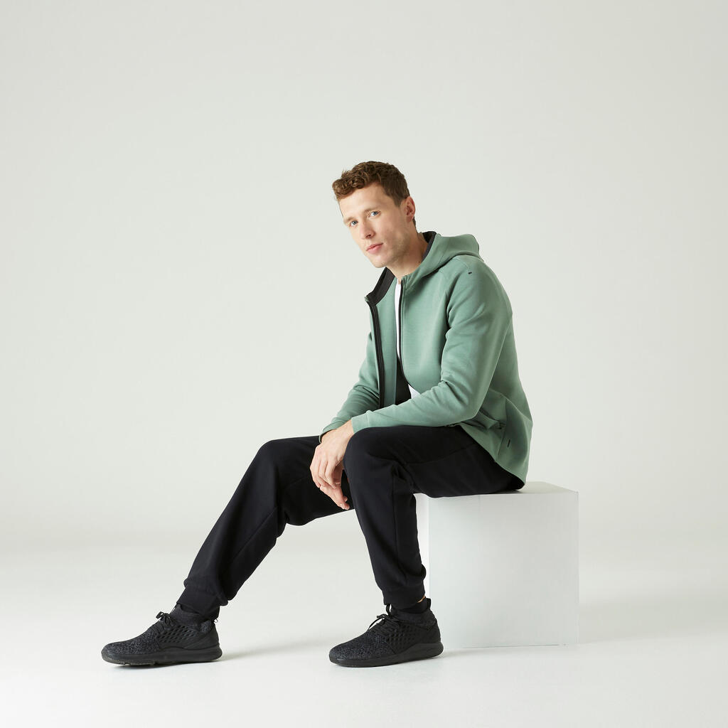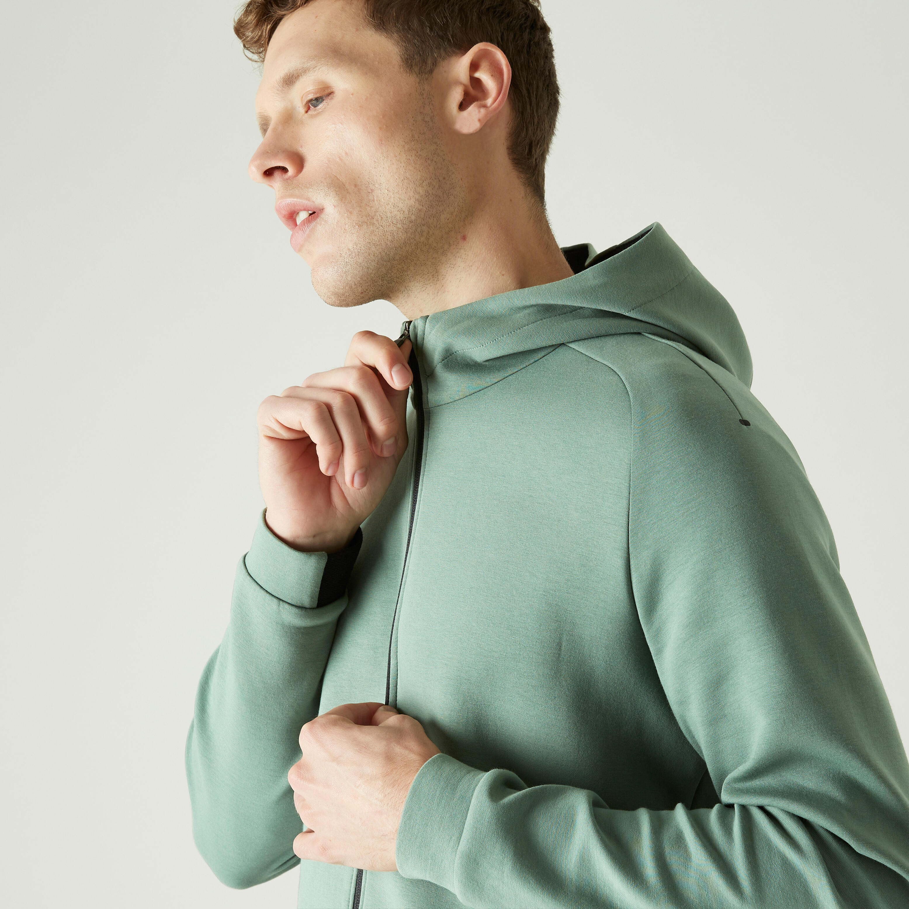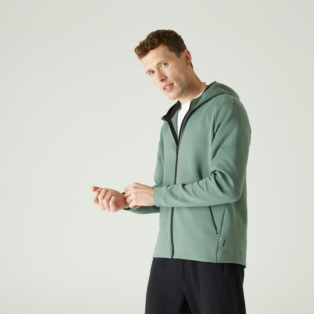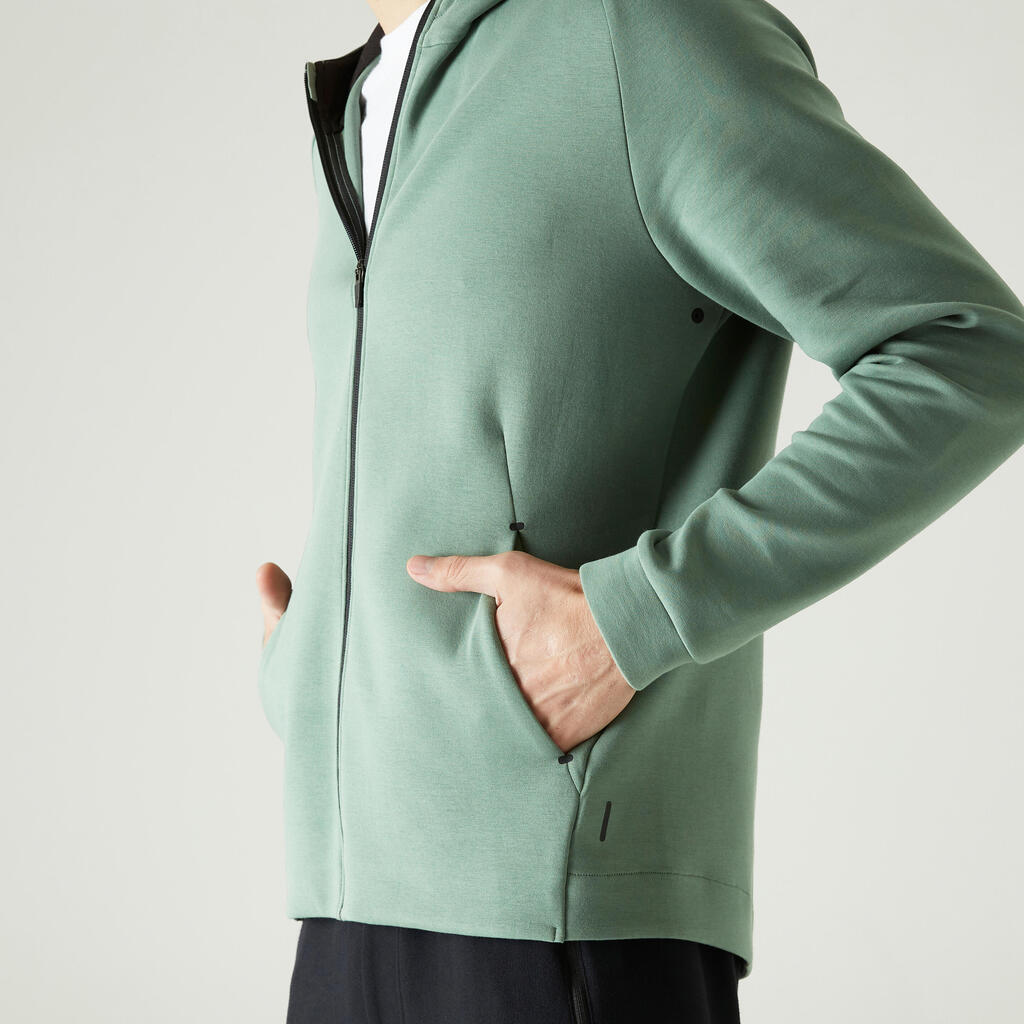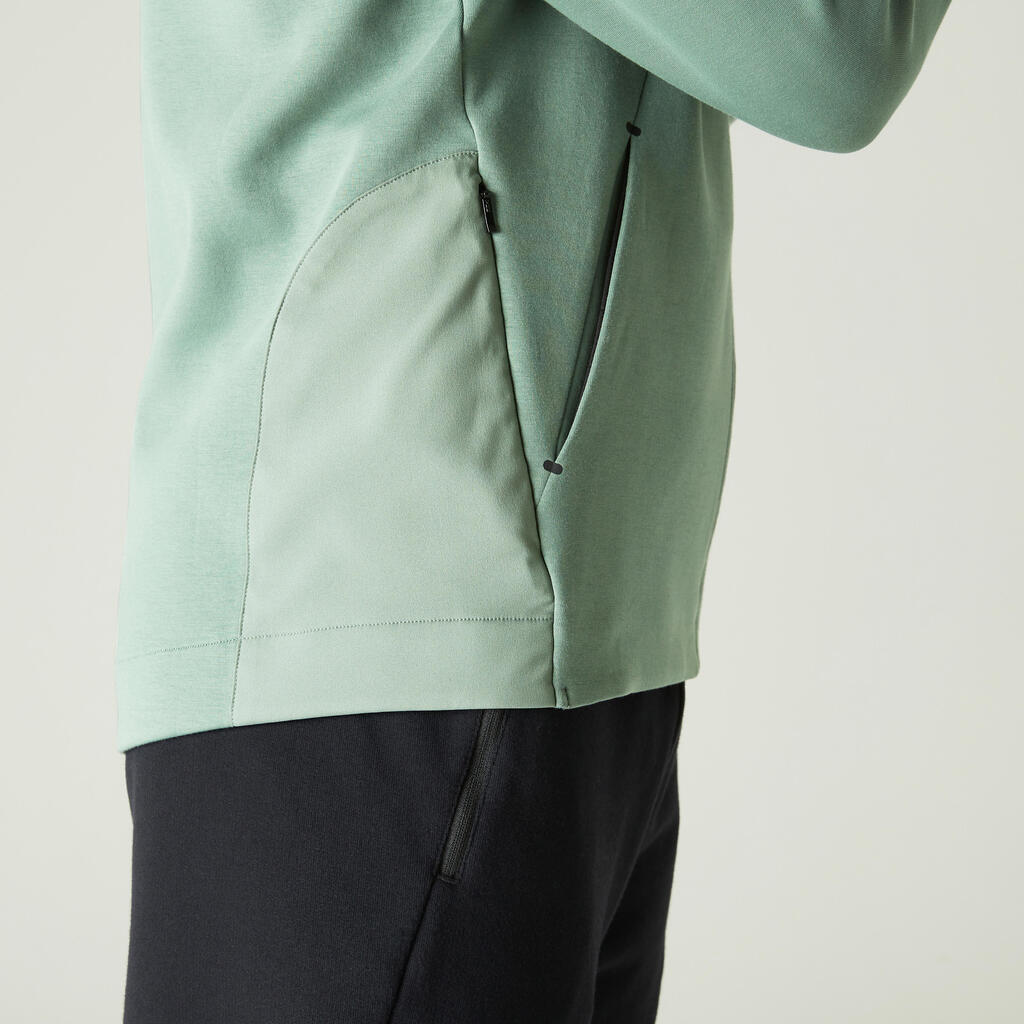 Zippered Fitness Hoodie with Zippered Pockets - Green