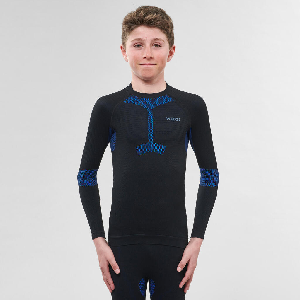 Kids' Ski Base Layer Top I-Soft 580 - Black/Blue