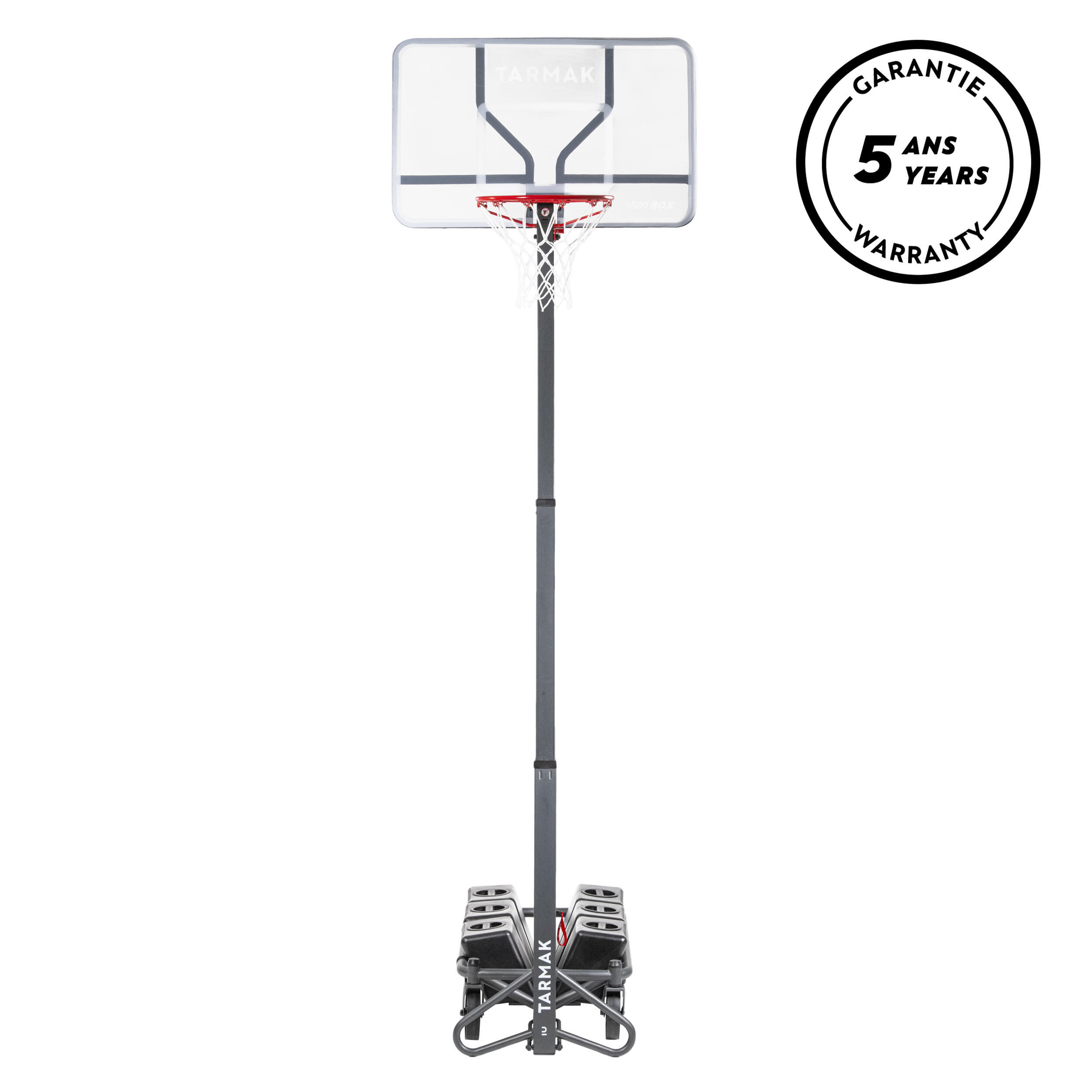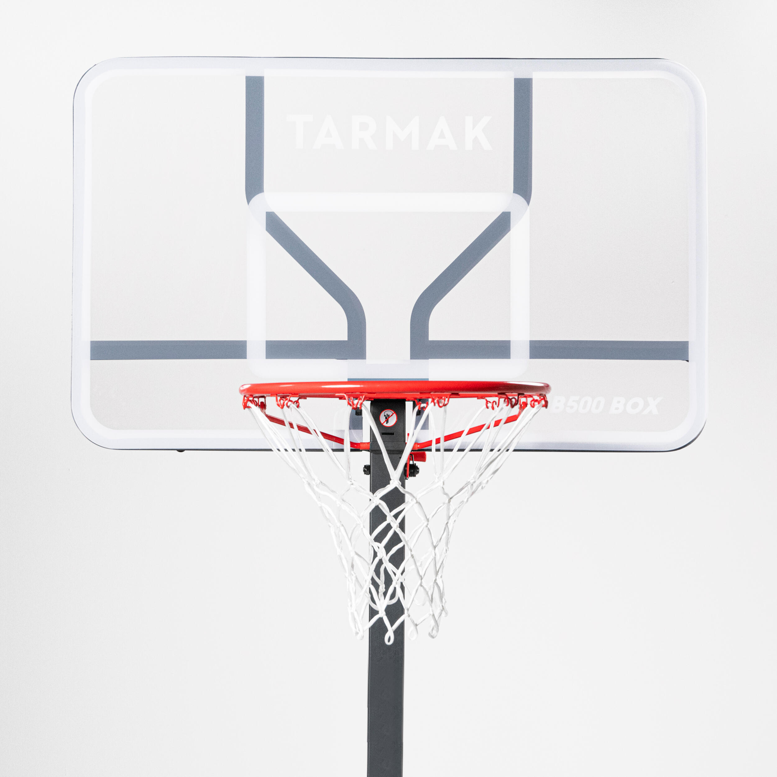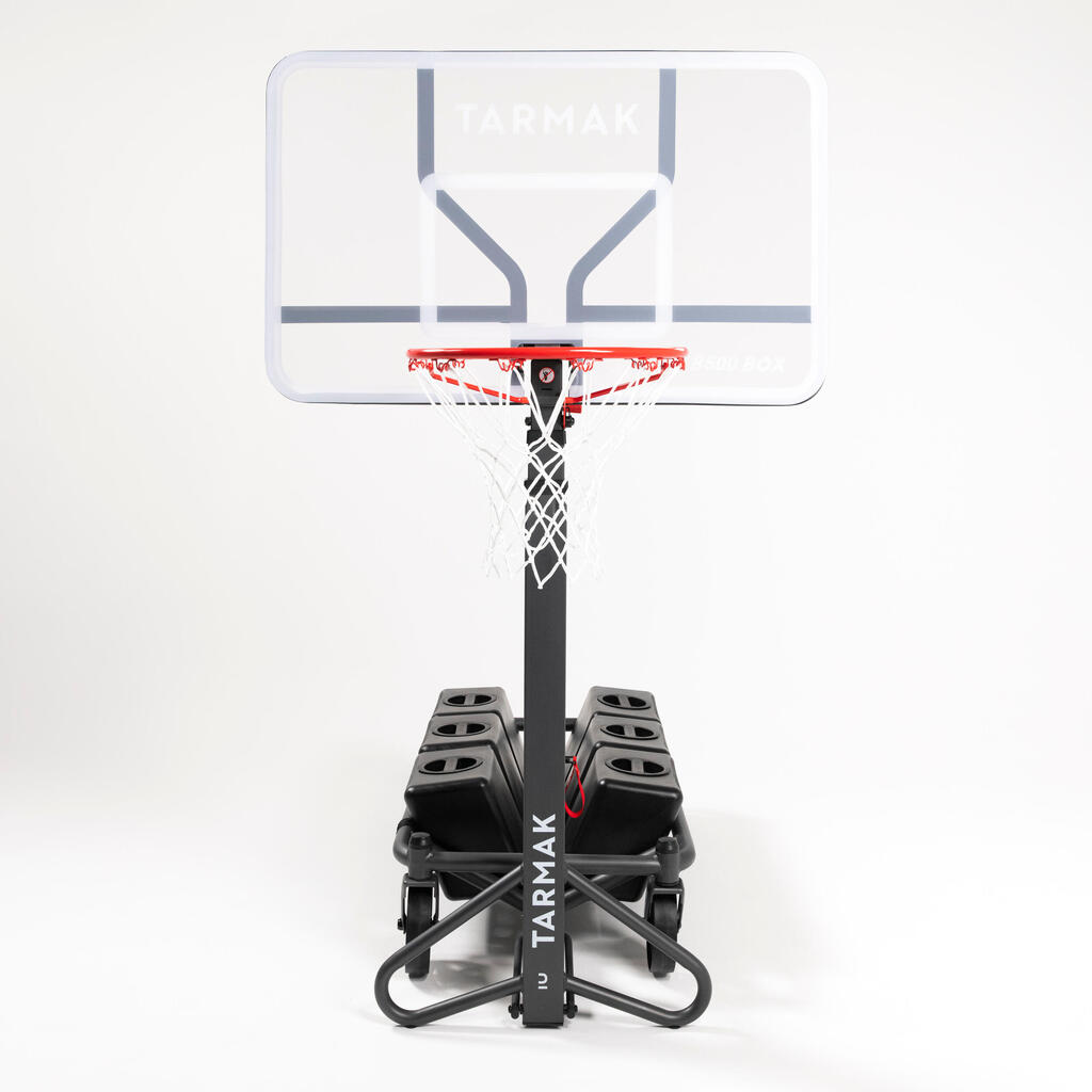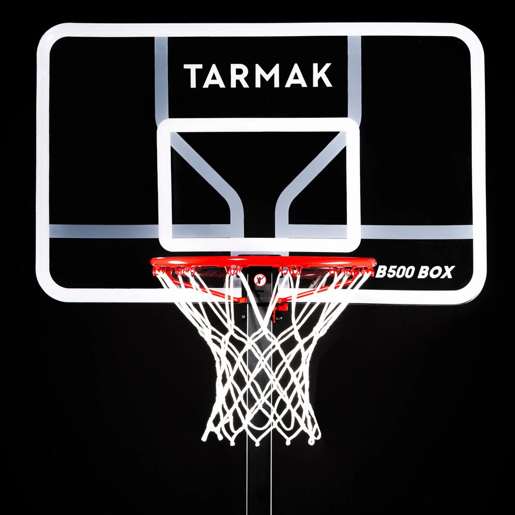 Εκτός από το ότι είναι φορητή και εύκολη στην αποθήκευση, η μπασκέτα B500 Box προσφέρει την ίδια ποιότητα αναπήδησης. Το ταμπλό της κατασκευάζεται από διαφανές πολυανθρακικό πάχους 3mm για εκπληκτικά σουτ που μοιάζουν με αυτά σε μπασκέτα εσωτερικού χώρου.