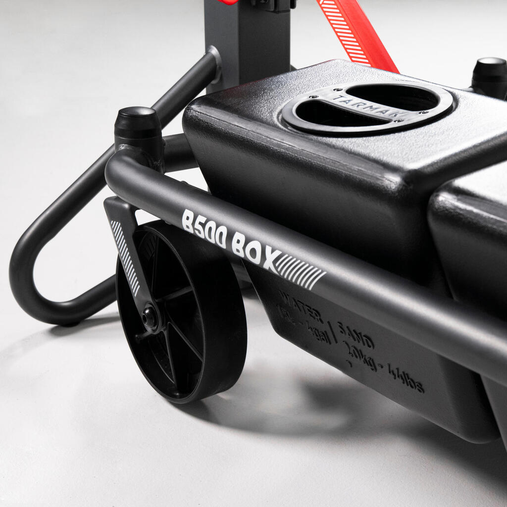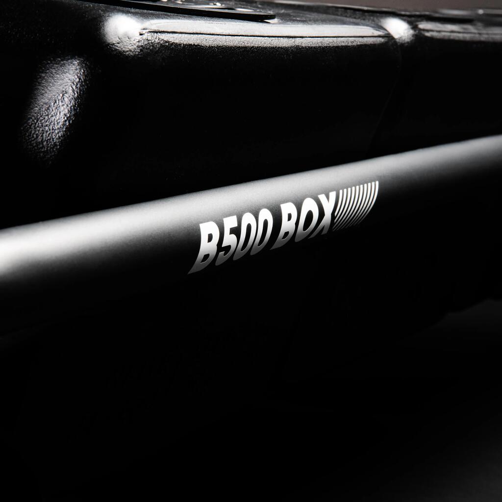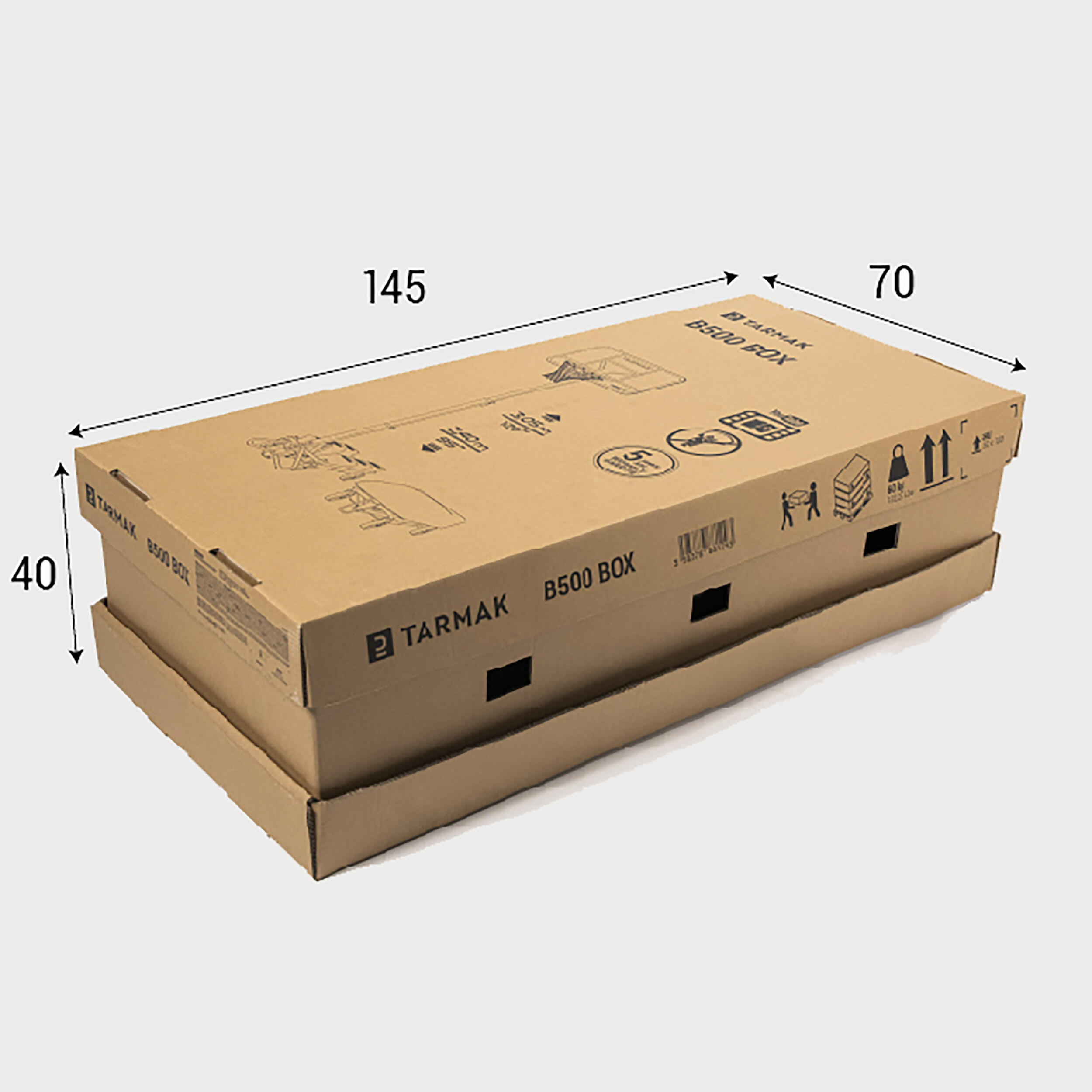 Η τεχνολογία BOX είναι μια καινοτομία της Tarmak με μοναδικό στόχο: την εύκολη αποθήκευση της μπασκέτας μετά τη χρήση, για εξοικονόμηση χώρου. Η υπόσχεση του B500 BOX: ξεδιπλώνεται και διπλώνεται σε λιγότερο από ένα λεπτό. Ο στύλος διπλώνεται και τίθεται σε ανάκλιση, ενώ το ταμπλό μπορεί να αφαιρεθεί και να τοποθετηθεί κάτω από το προστατευτικό κάλυμμα για εύκολη αποθήκευση. Δημιουργήστε το δικό σας γήπεδο, χωρίς να καταλάβετε όλο τον χώρο του κήπου σας.