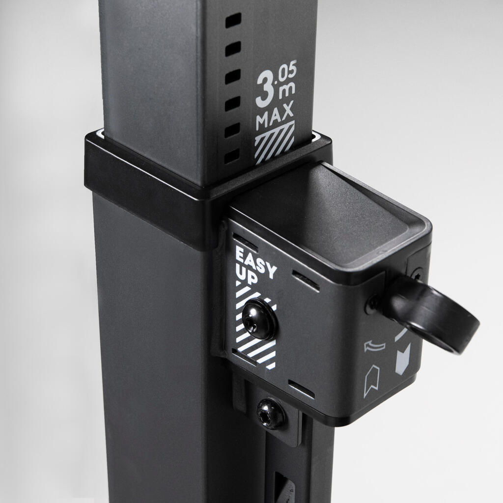Η ενσωματωμένη μανιβέλα σας επιτρέπει να ρυθμίζετε τη μπασκέτα σε πολλά διαφορετικά ύψη παιχνιδιού, από 2,40m έως 3,05m! Ιδανική για παιχνίδι σε οποιαδήποτε ηλικία.