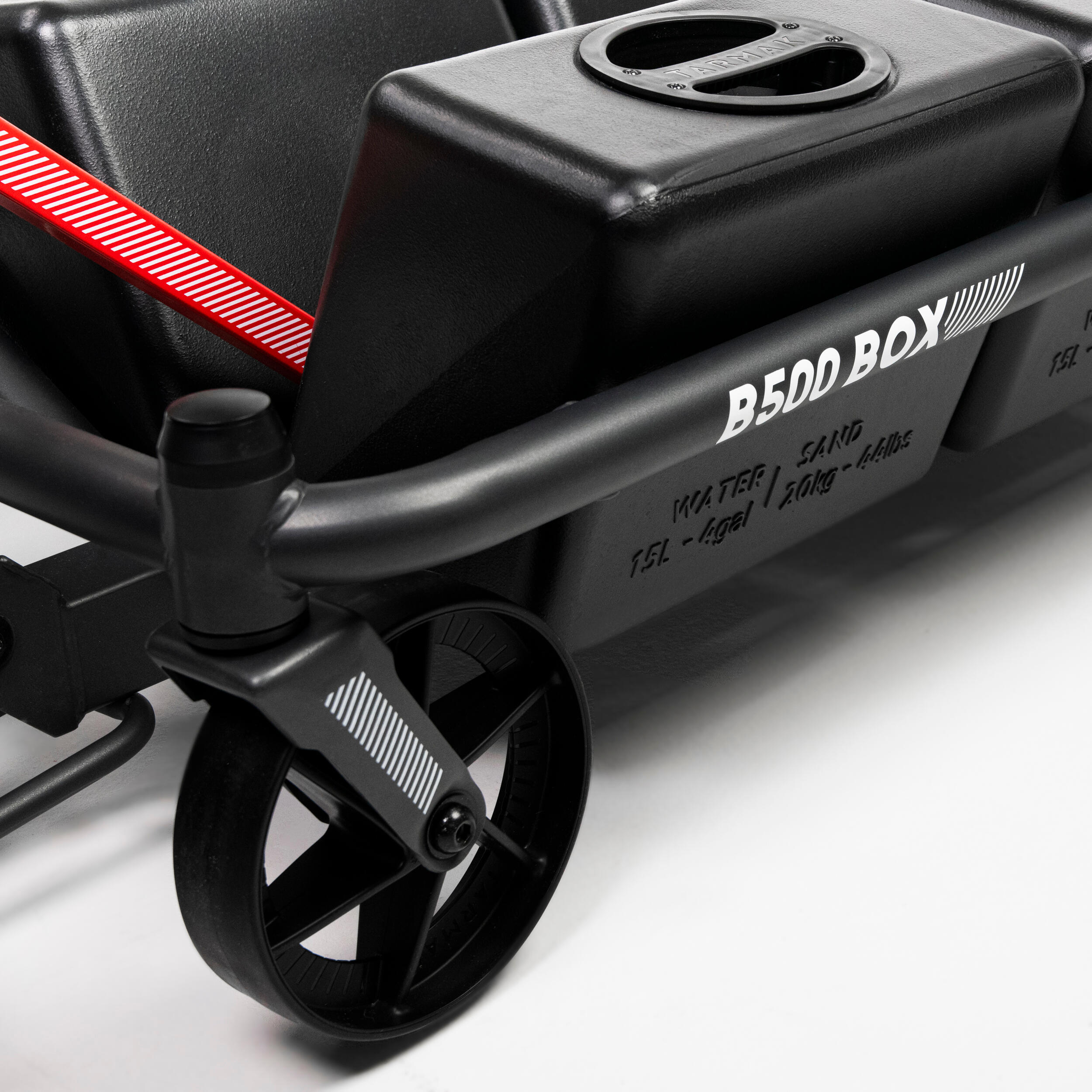 Η μπασκέτα B500 Box είναι ιδιαίτερα φορητή. Χάρη στους μεγάλους τροχούς της, μπορεί να περάσει πάνω από οποιοδήποτε εμπόδιο (σκαλιά, βότσαλα, κλπ.), επομένως είναι εύκολη στη μετακίνηση από την αποθήκη στο σημείο τοποθέτησης.