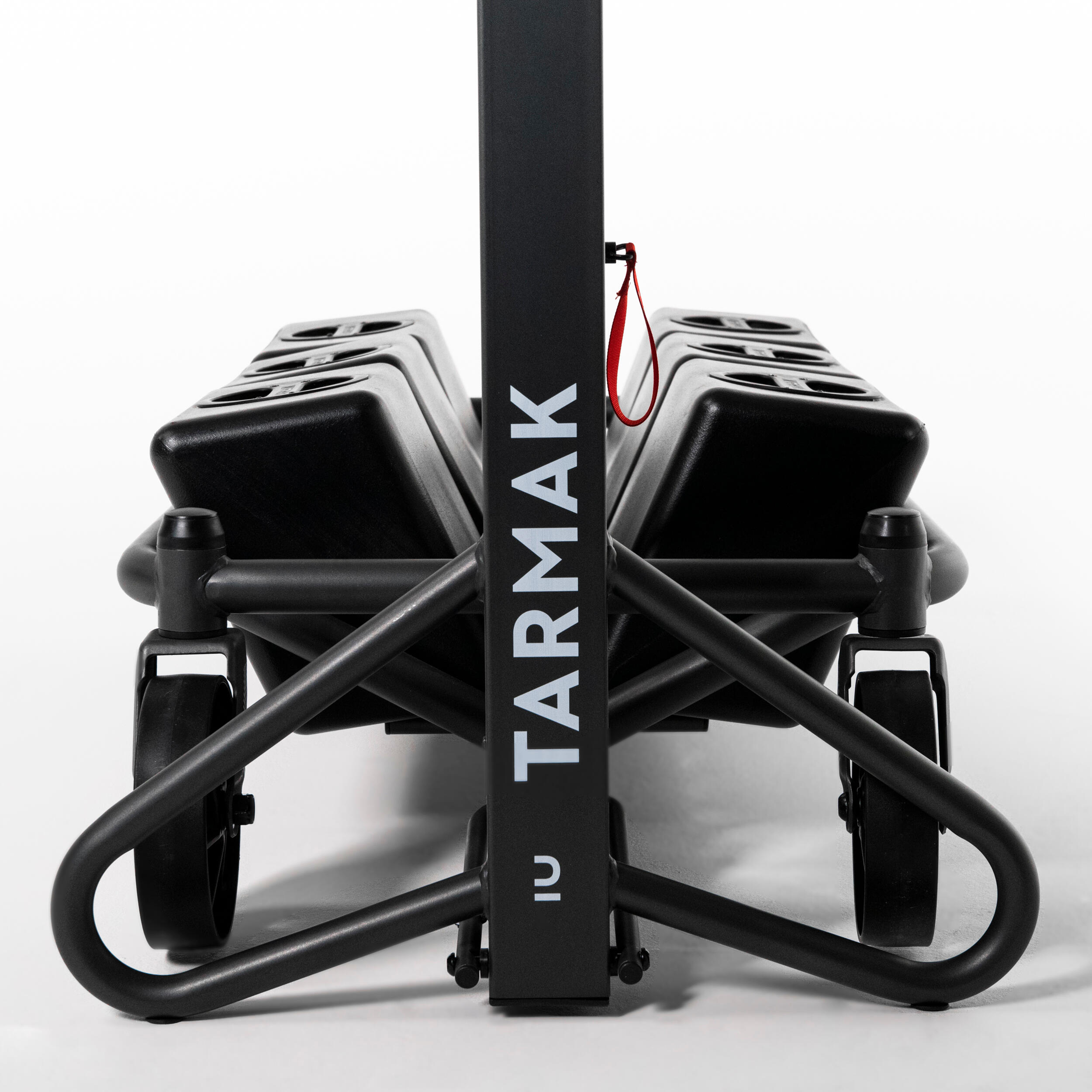 Σε αντίθεση με τις συνήθεις μπασκέτες με ενιαία βάση, αυτή η μπασκέτα διαθέτει 6 δεξαμενές, καθεμία 15L, οι οποίες είναι τοποθετημένες σε μια βάση γύρω από τους 4 τροχούς και μπορούν να γεμίσουν με νερό ή άμμο (κατά προτίμηση άμμο). Οι δεξαμενές μπορούν να γεμίζουν και να αδειάζουν η καθεμία χωριστά, για μεγαλύτερη ευκολία.