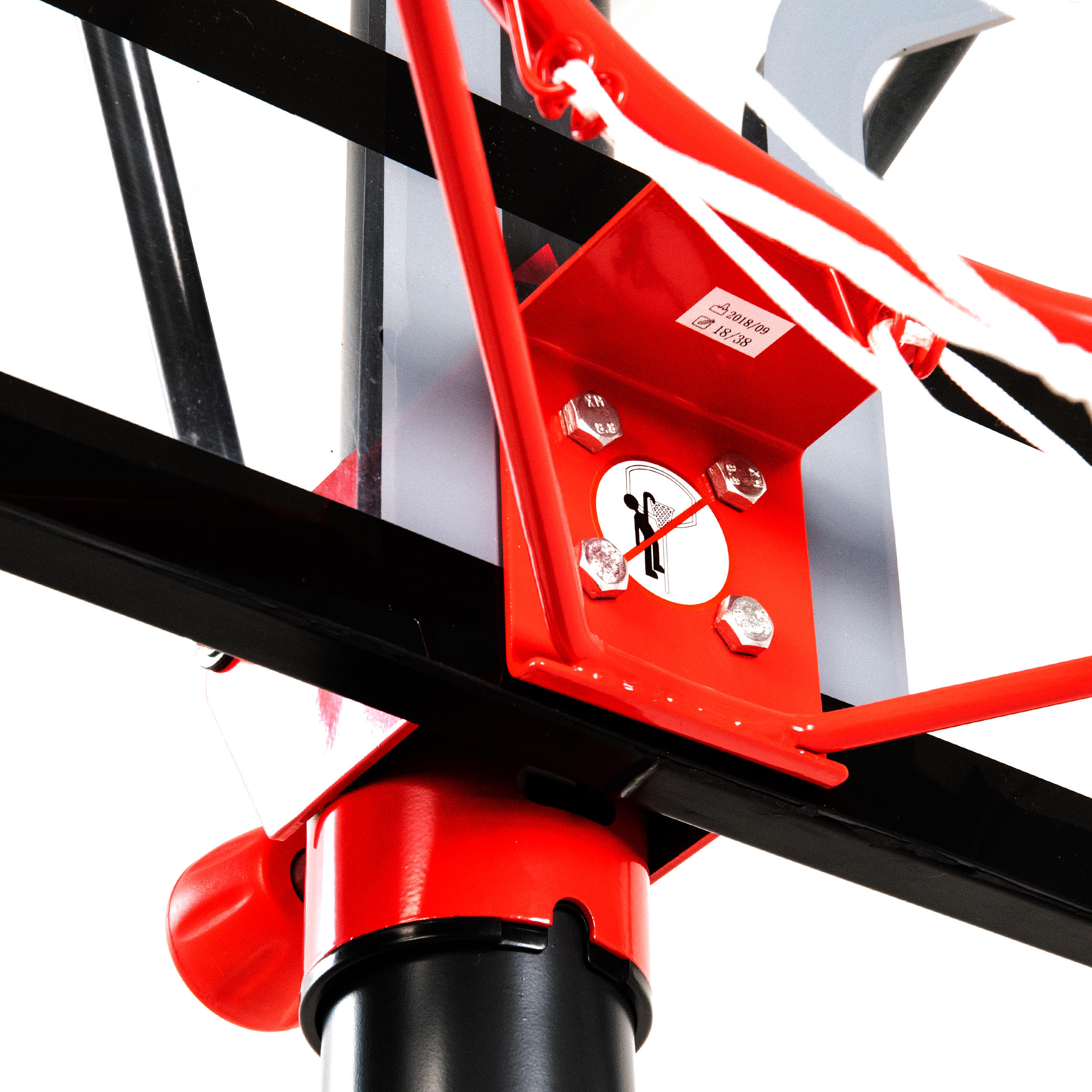 Με τη μπασκέτα B100 Easy από πολυανθρακικό δεν χρειάζεστε εργαλεία για να ρυθμίσετε το ύψος στις 5 θέσεις (από 2,20m, ιδανικό για παιδιά ηλικίας περίπου 8 ετών, έως 3,05m, που είναι το επίσημο ύψος), καθώς μπορείτε να χρησιμοποιείτε τον ενσωματωμένο δίσκο ρύθμισης και το σύστημα εγκοπών.