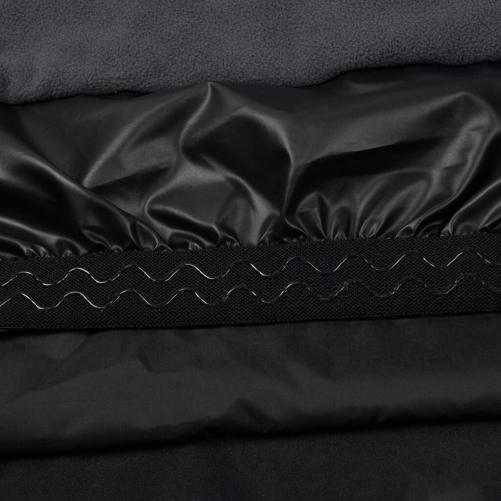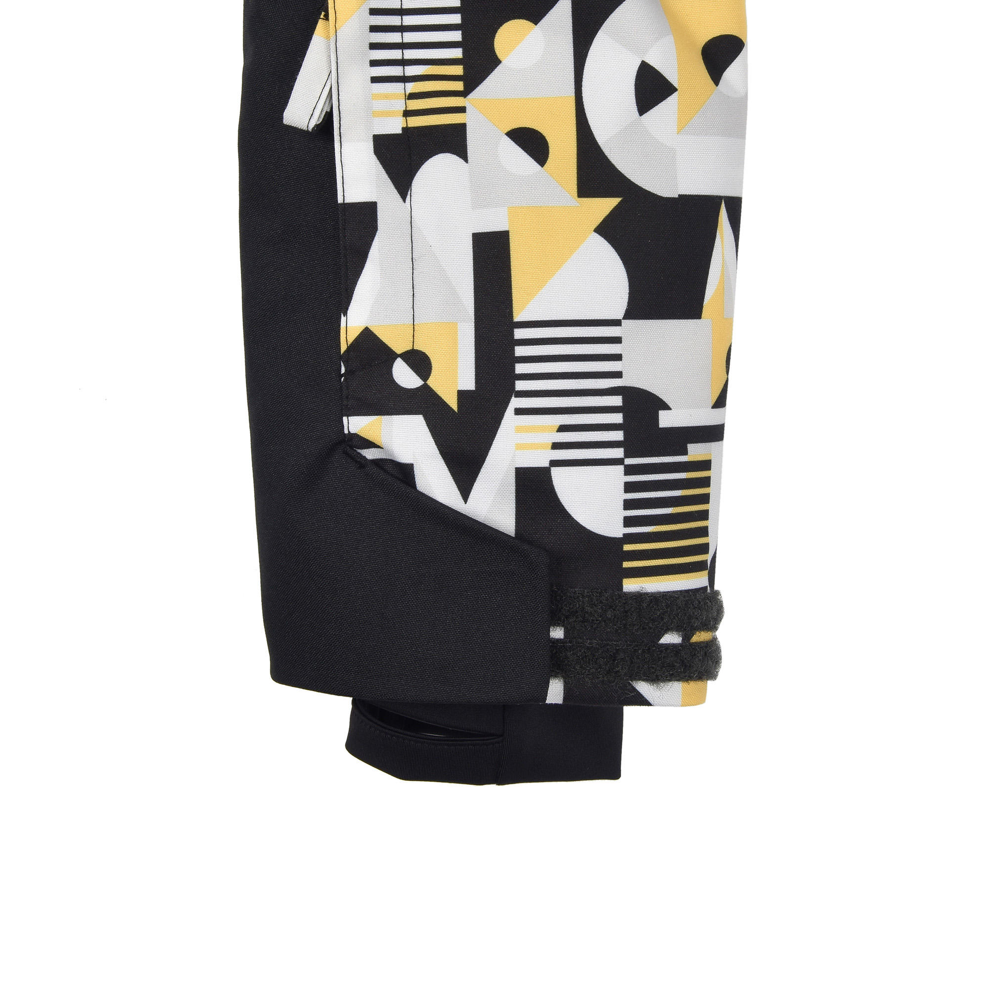 Jacket and long sleeves with cuffs that have thumb holes to prevent snow from getting inside the sleeves, elbow and side reinforcements for durability, snow skirt, ski pass holder.