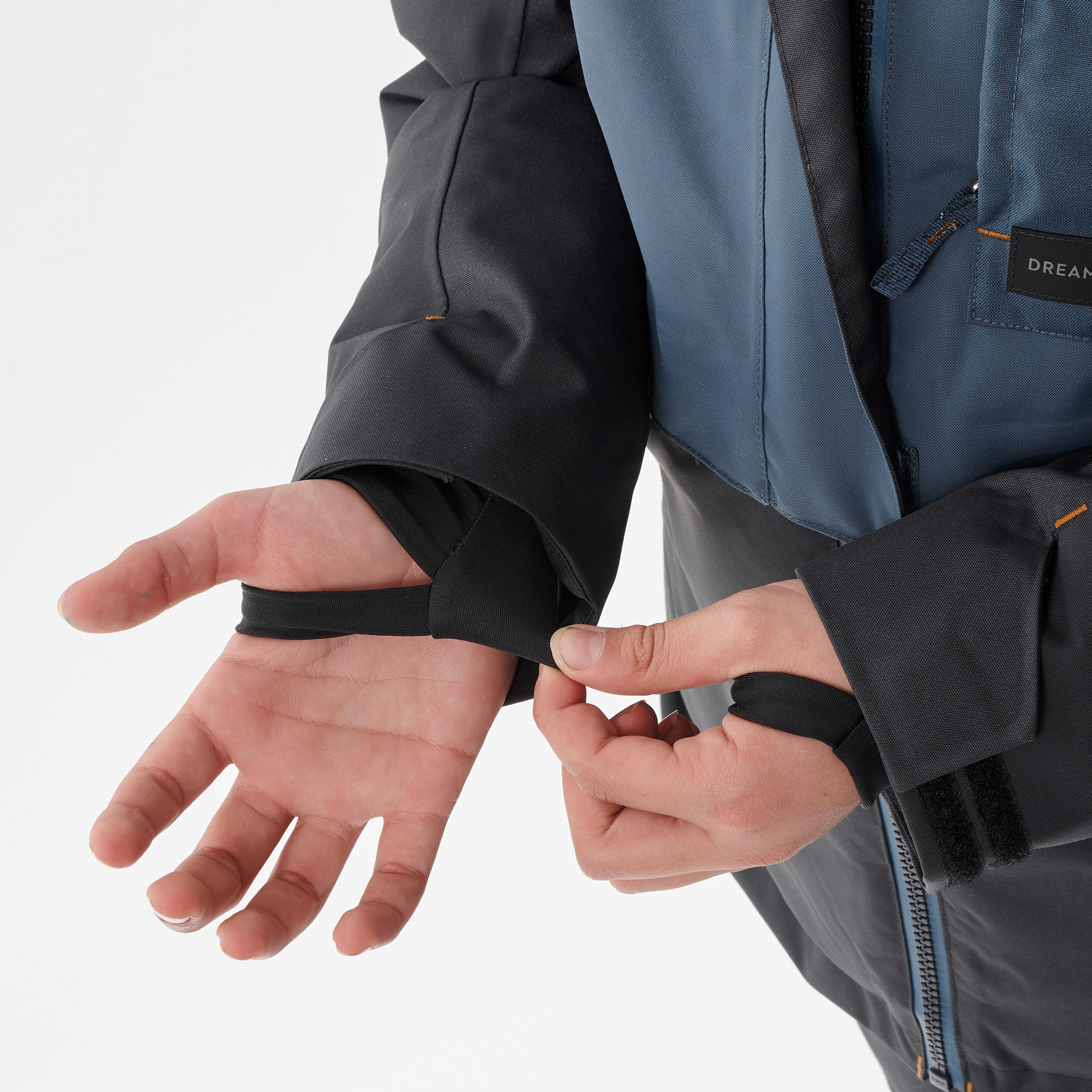_ at the cuffs (very exposed area): long sleeves and cuffs with thumb holes to prevent snow from entering,