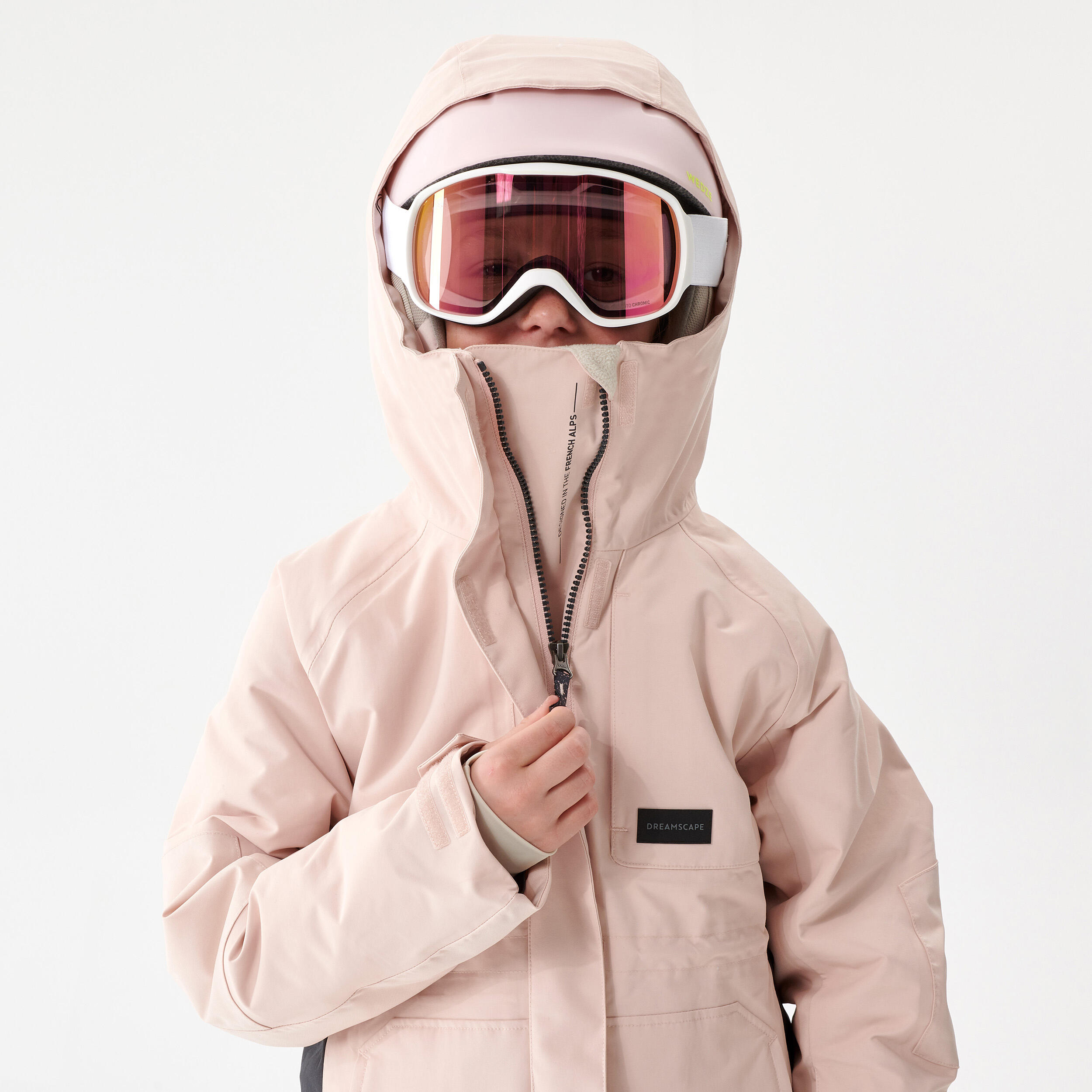 Falls happen when snowboarding and snow can enter the jacket. To limit this unpleasant experience, the collar and hood were designed together.