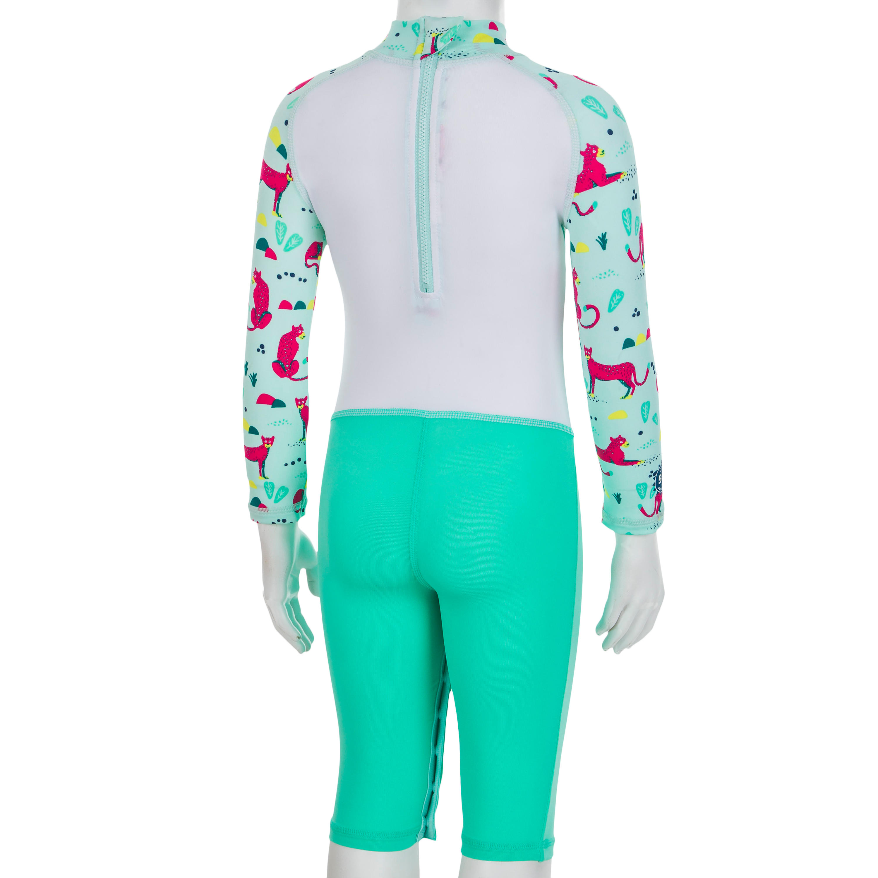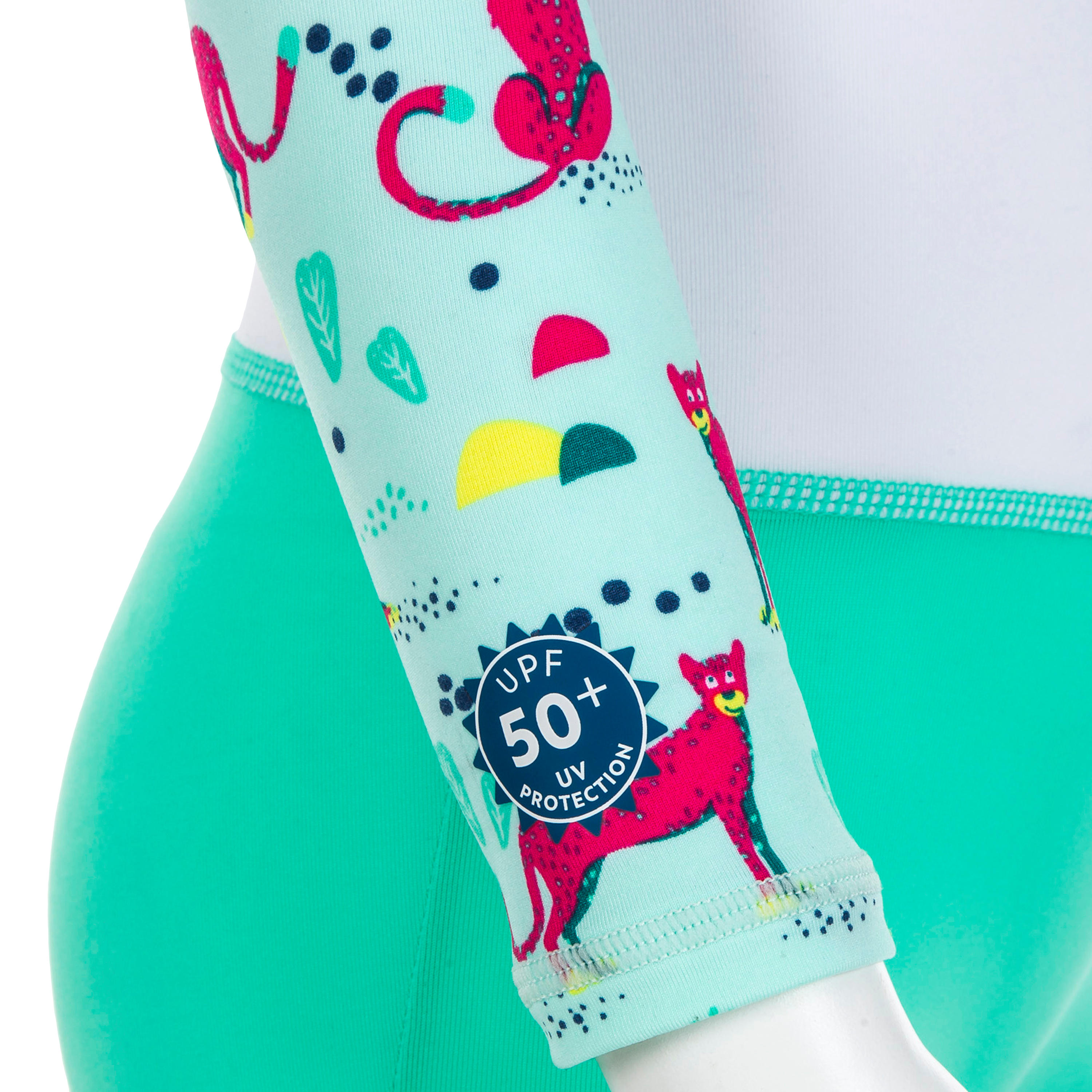 Παιδικό, μακρυμάνικο μαγιό με προστασία uv - πράσινη και λευκή στάμπα