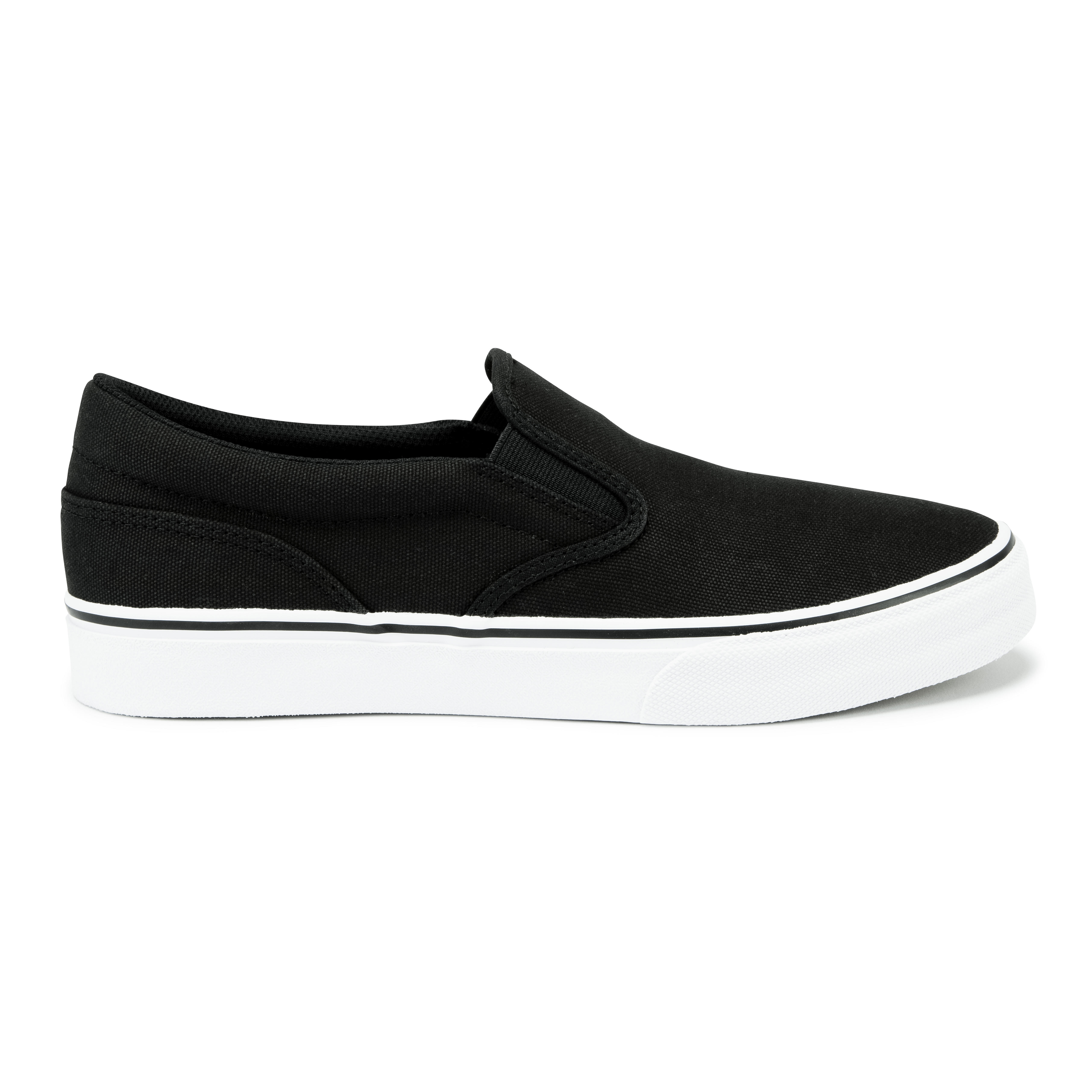 Slip-on, laceless skate shoes with a canvas upper and vulcanised sole, perfect for skateboarding and longboarding.