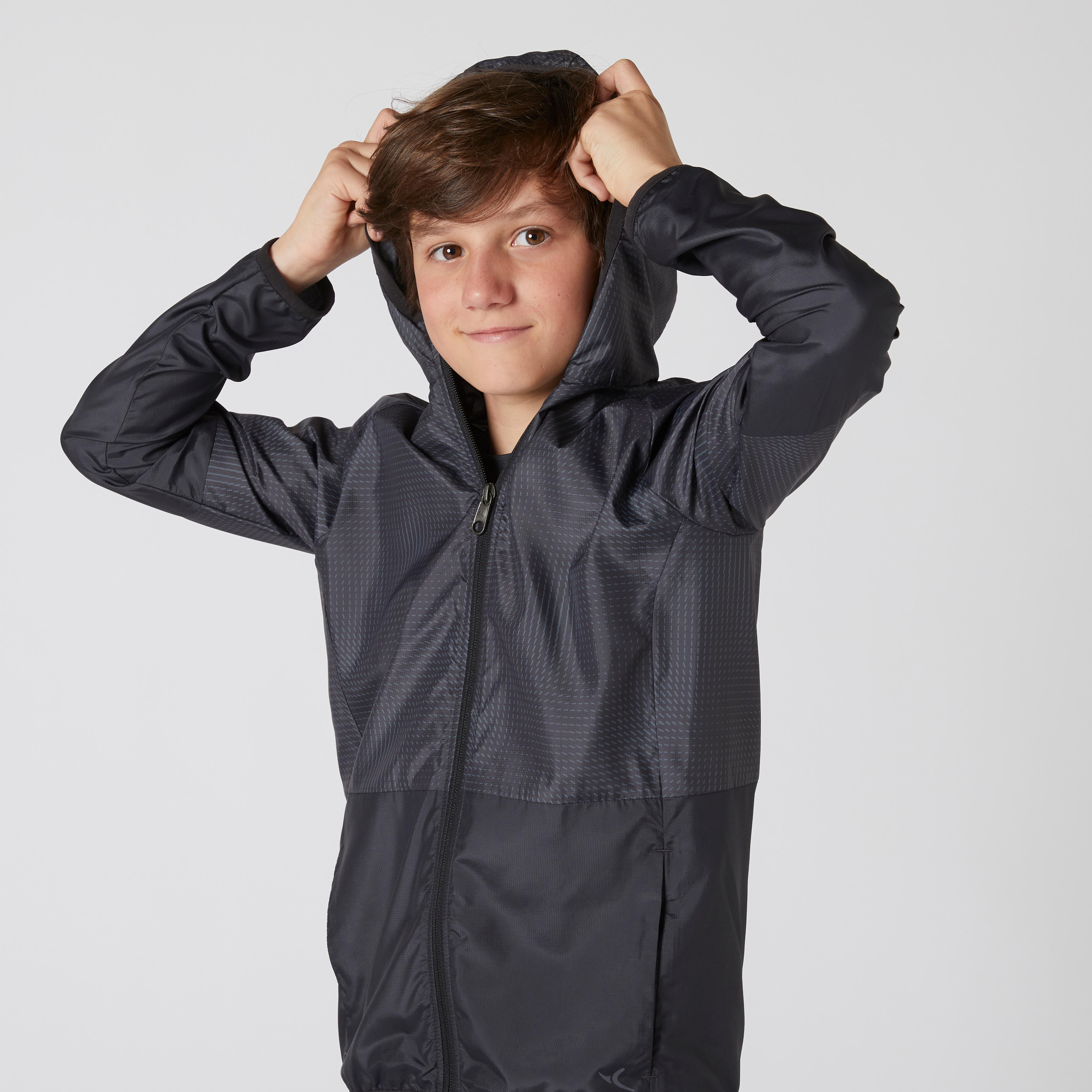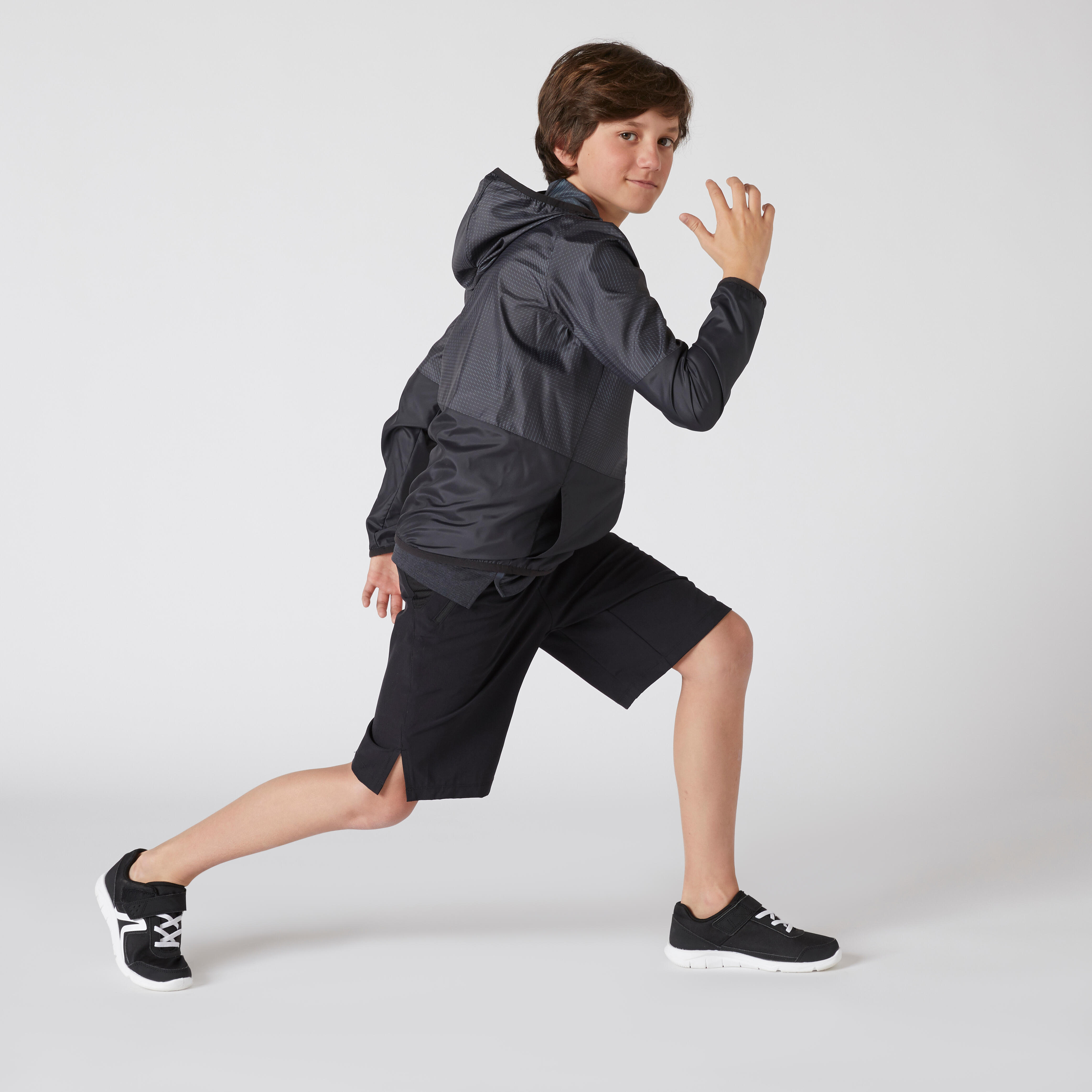 Boy's Ultra-Light Compact Breathable Gym Jacket W500 - Black/Print
