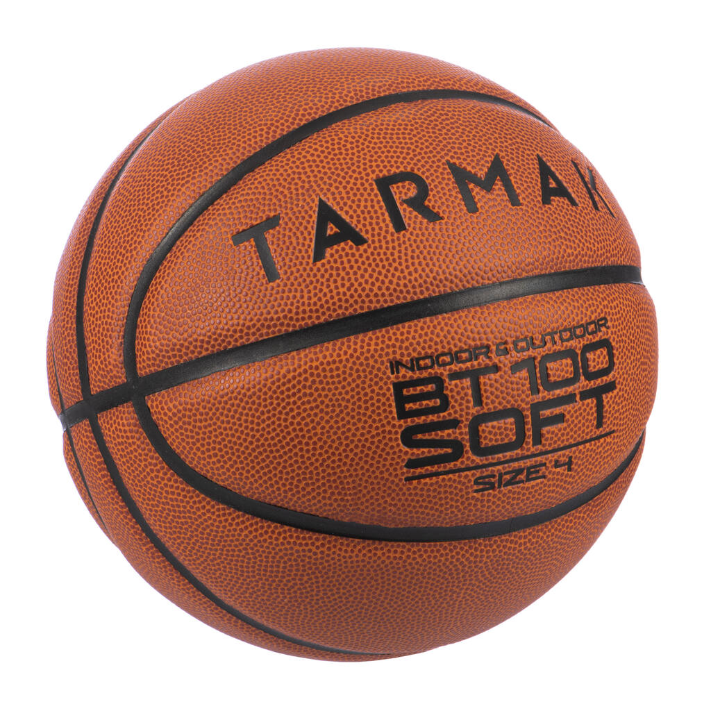 The Tarmak BT100 size 4 basketball is perfect for learning to play. Ball handling is enhanced by the deep grooves and pebbled cover. Its outer cover is made from foam plastic to give it a more cushioned feel that is softer on contact. Its 100% polyester filament winding ensures good-quality bounce. It is very durable and can be used both indoors and outdoors.