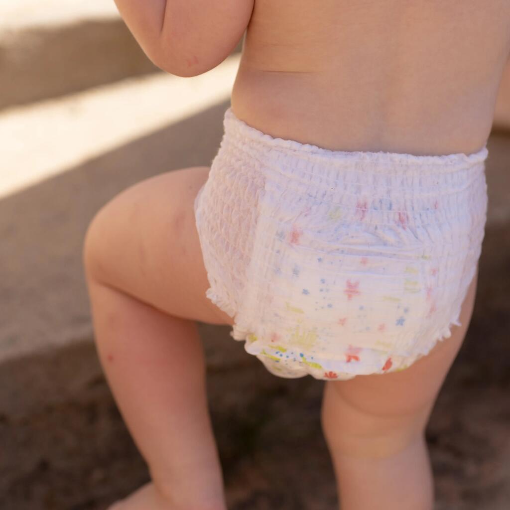 Επιλέξτε το μέγεθος που αντιστοιχεί ακριβώς στο βάρος του παιδιού σας, για καλή προσαρμογή του ελαστικού υλικού γύρω από τους μηρούς και τη μέση.