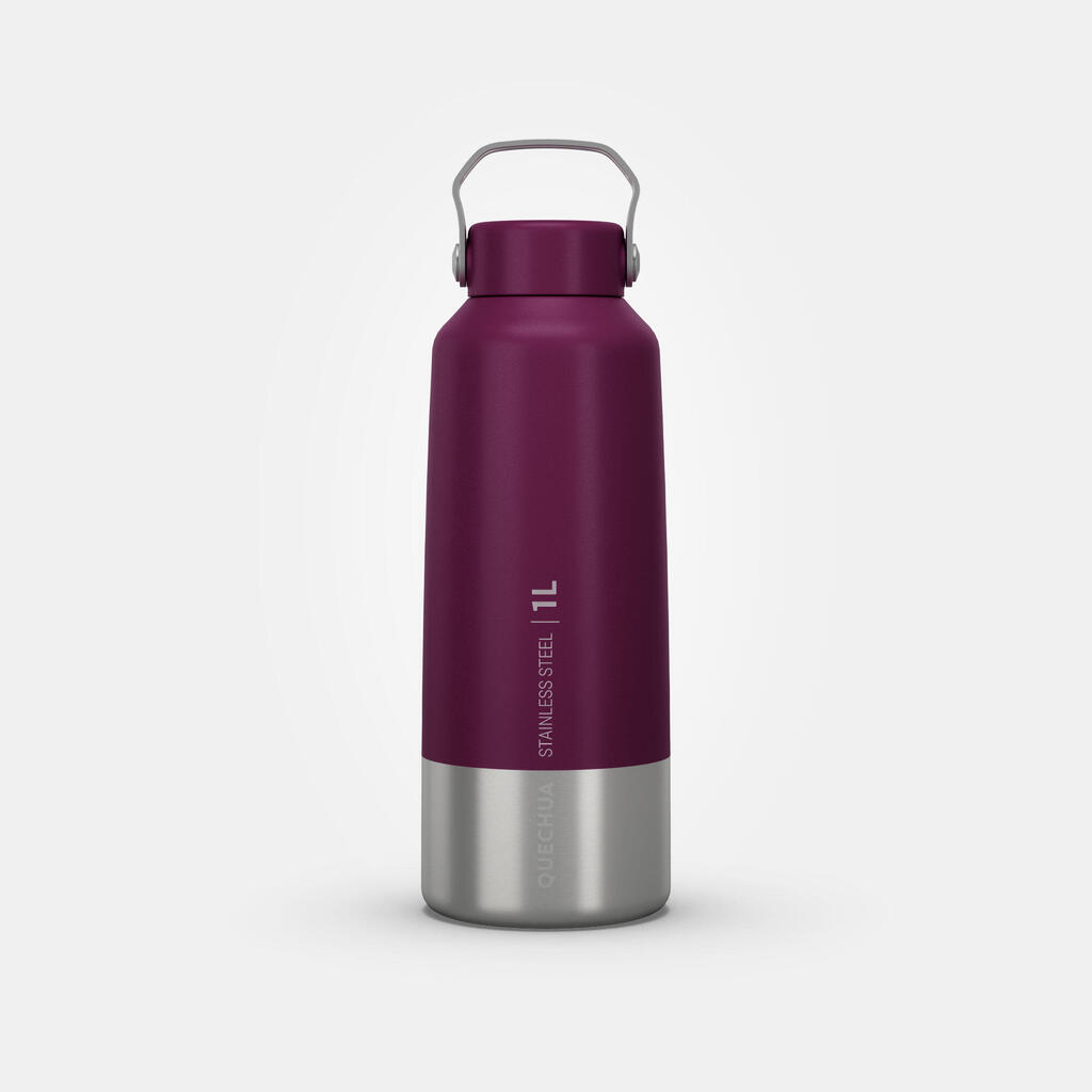 Hiking Stainless Steel Water Bottle with Screw Top MH100 1L - red