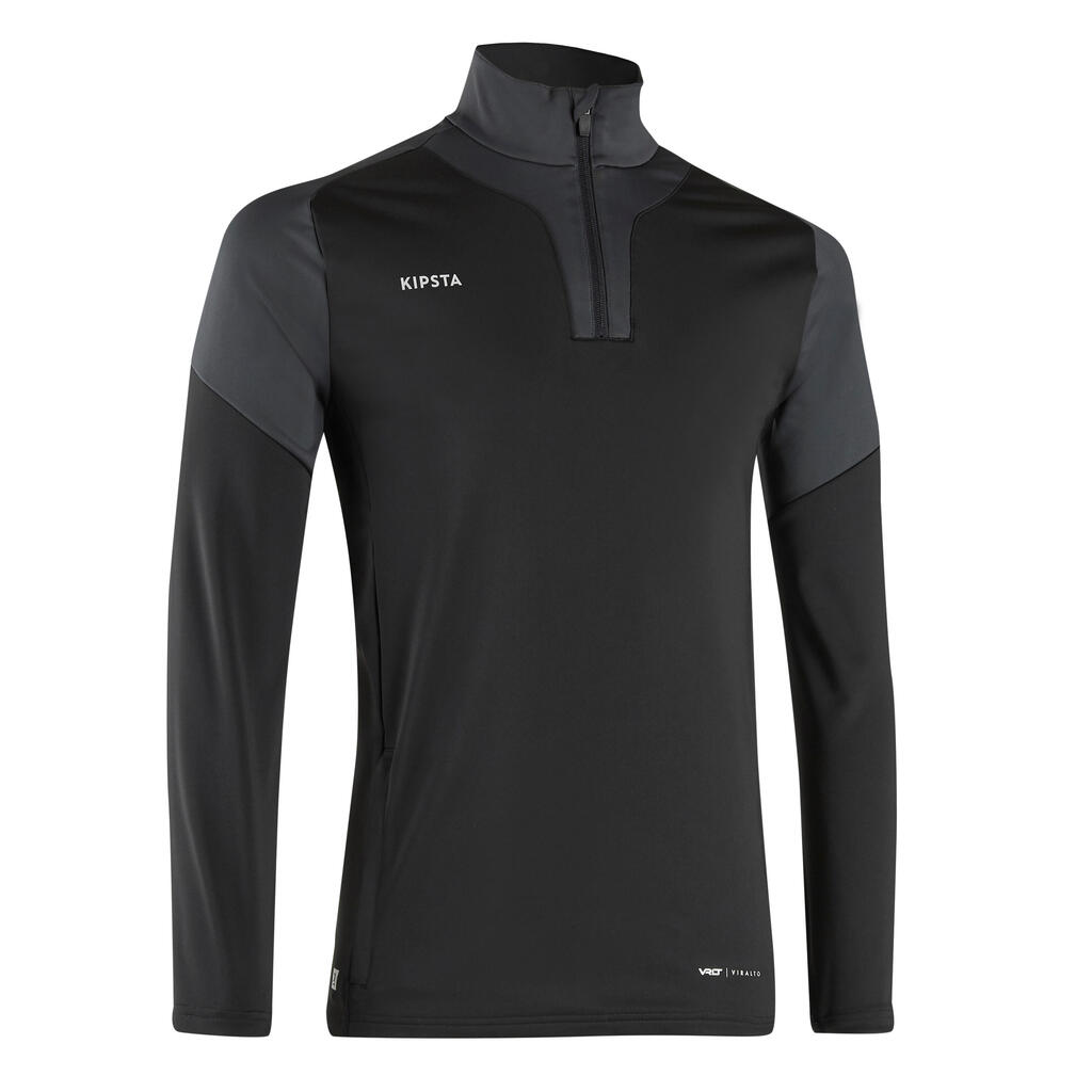 Μακρυμάνικη αθλητική μπλούζα ποδοσφαίρου με 1/2 φερμουάρ viralto club - carbon grey και μαύρο