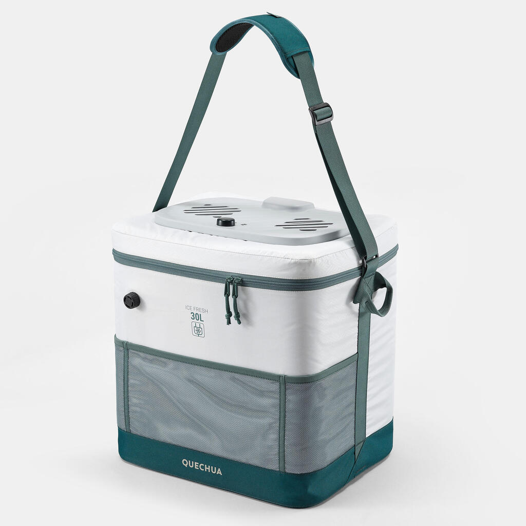 Αυτό το θερμοηλεκτρικό ψυγείο ψύχει χρησιμοποιώντας το φαινόμενο Peltier. Λειτουργεί στέλνοντας ηλεκτρικό ρεύμα σε αγωγούς με διαφορετικές πολιτκότητες. Με τον τρόπο αυτό, το ένα στοιχείο κρυώνει όσο το άλλο θερμαίνεται. Σε λειτουργία ψύξης, το θερμοηλεκτρικό ψυγείο μπορεί να φτάσει τους 17°C, θερμοκρασία χαμηλότερη από τη θερμοκρασία περιβάλλοντος (32°C), χωρίς την προσθήκη κρύων μέσων (λ.χ. παγοκύστες).