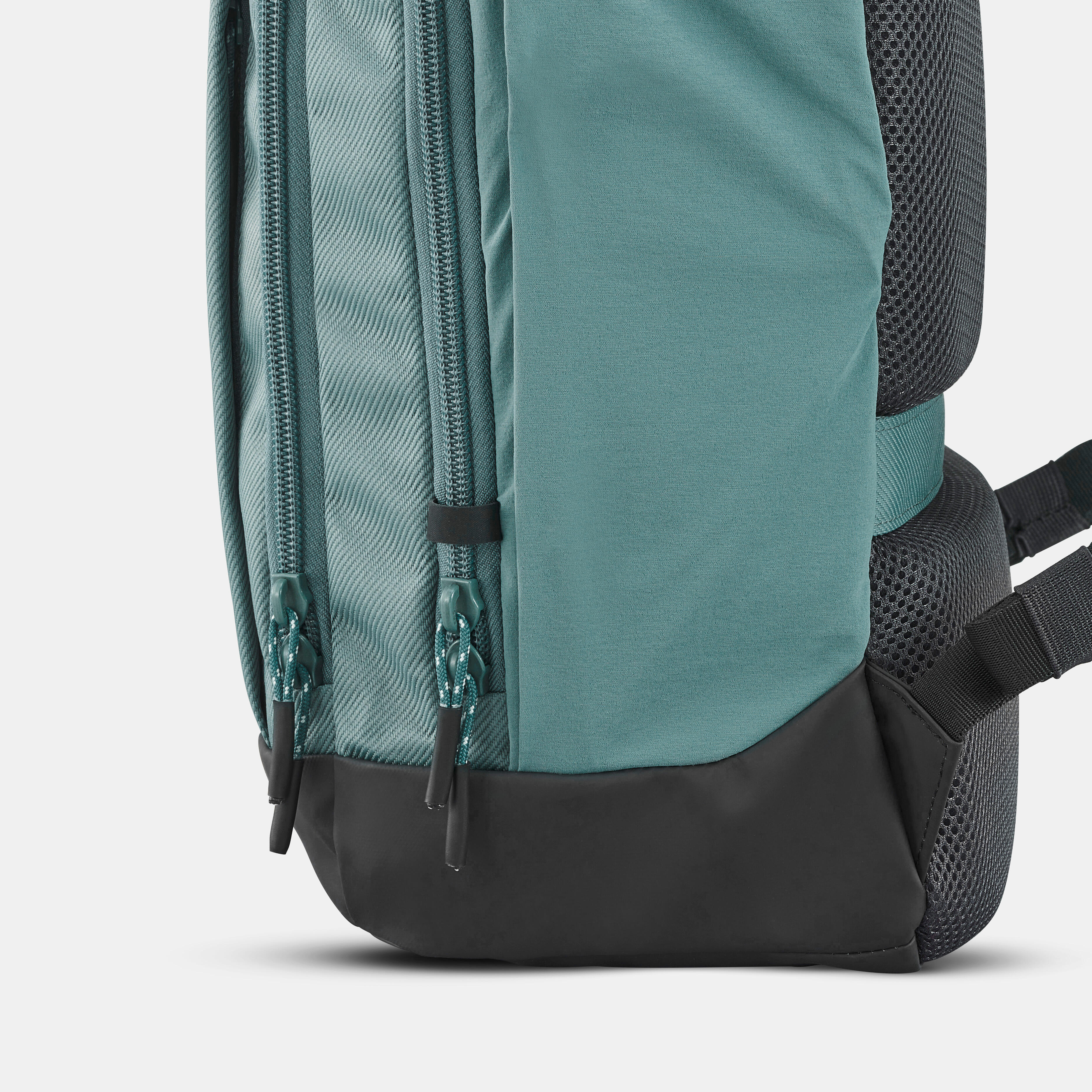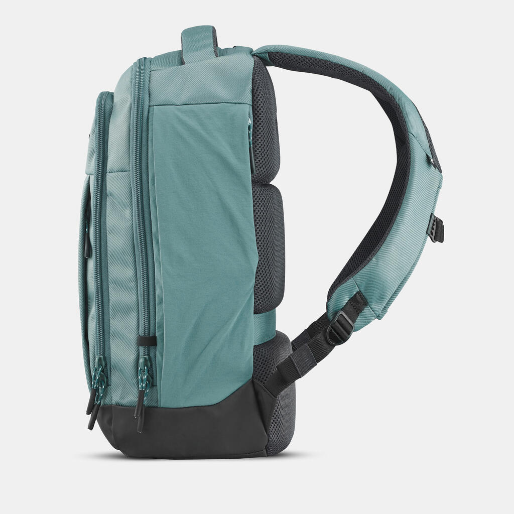 Αυτό το σακίδιο πλάτης πεζοπορίας έχει 3 σημαντικά πλεονεκτήματα: είναι άνετο, είναι χωρισμένο σε θήκες και διαθέτει πολλά αξεσουάρ. Πρακτικό σε καθημερινή βάση, χάρη στις 2 θήκες, τις 12 τσέπες και τις έξυπνες λειτουργίες του σε μέγεθος χειραποσκευής για αεροπλάνο.