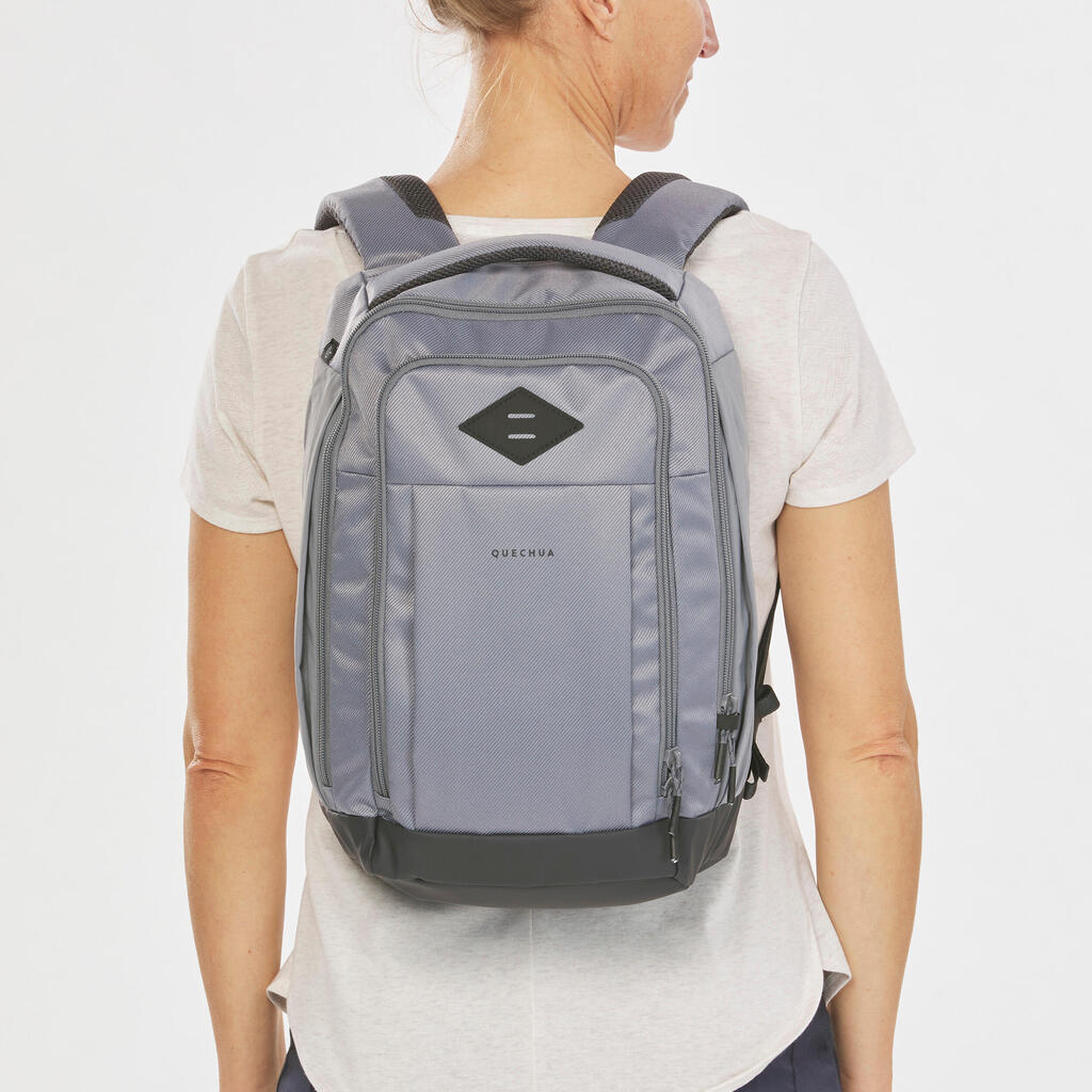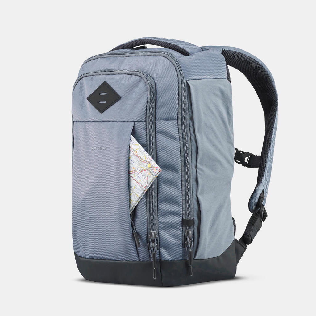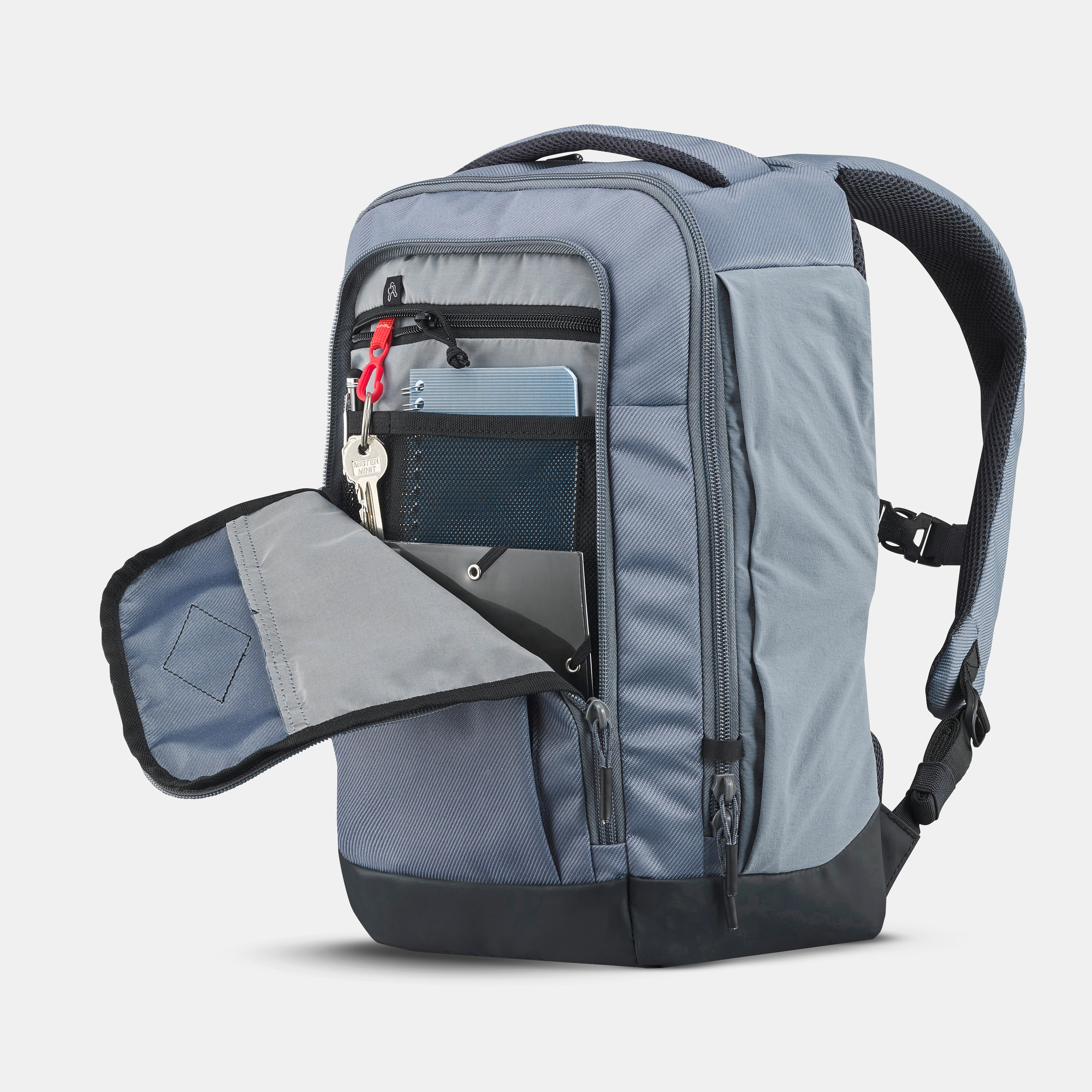 Αυτό το σακίδιο πλάτης πεζοπορίας έχει 3 σημαντικά πλεονεκτήματα: είναι άνετο, είναι χωρισμένο σε θήκες και διαθέτει πολλά αξεσουάρ. Πρακτικό σε καθημερινή βάση, χάρη στις 2 θήκες, τις 12 τσέπες και τις έξυπνες λειτουργίες του σε μέγεθος χειραποσκευής για αεροπλάνο.