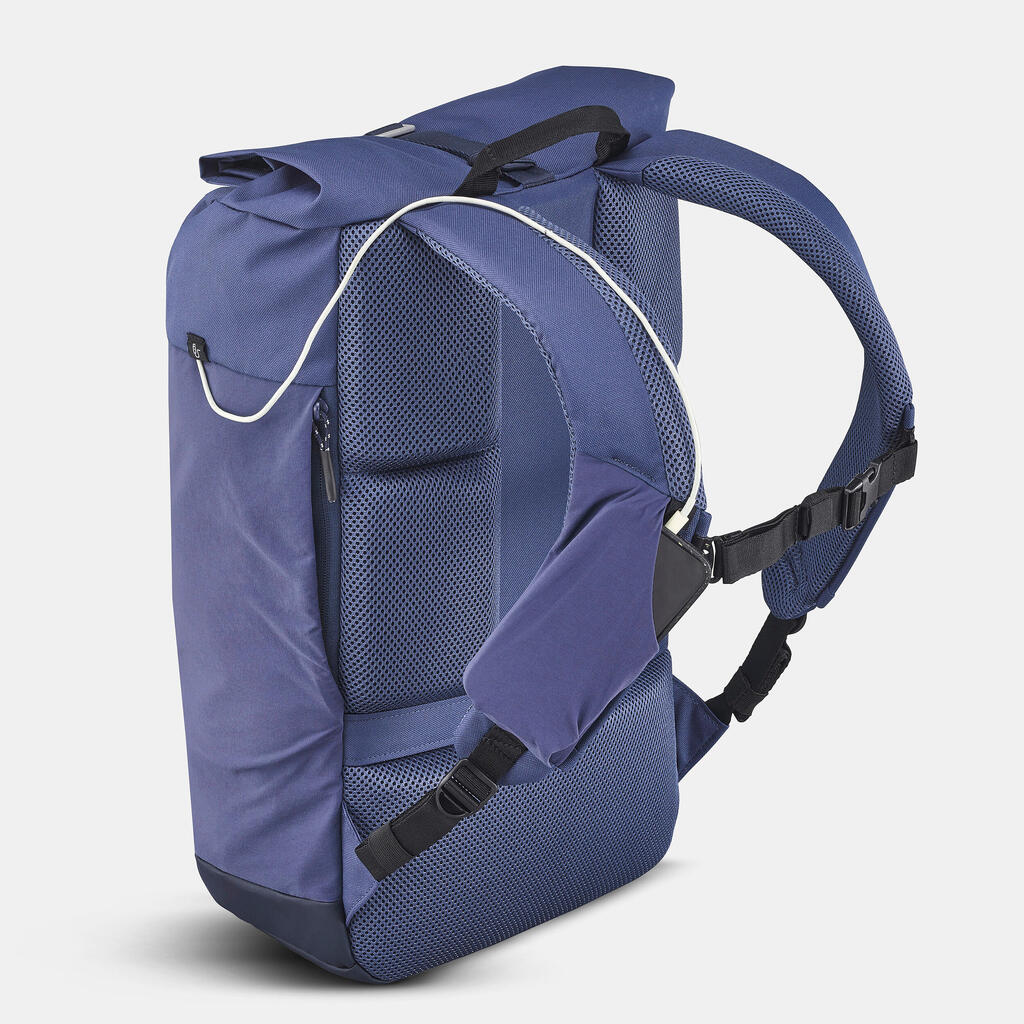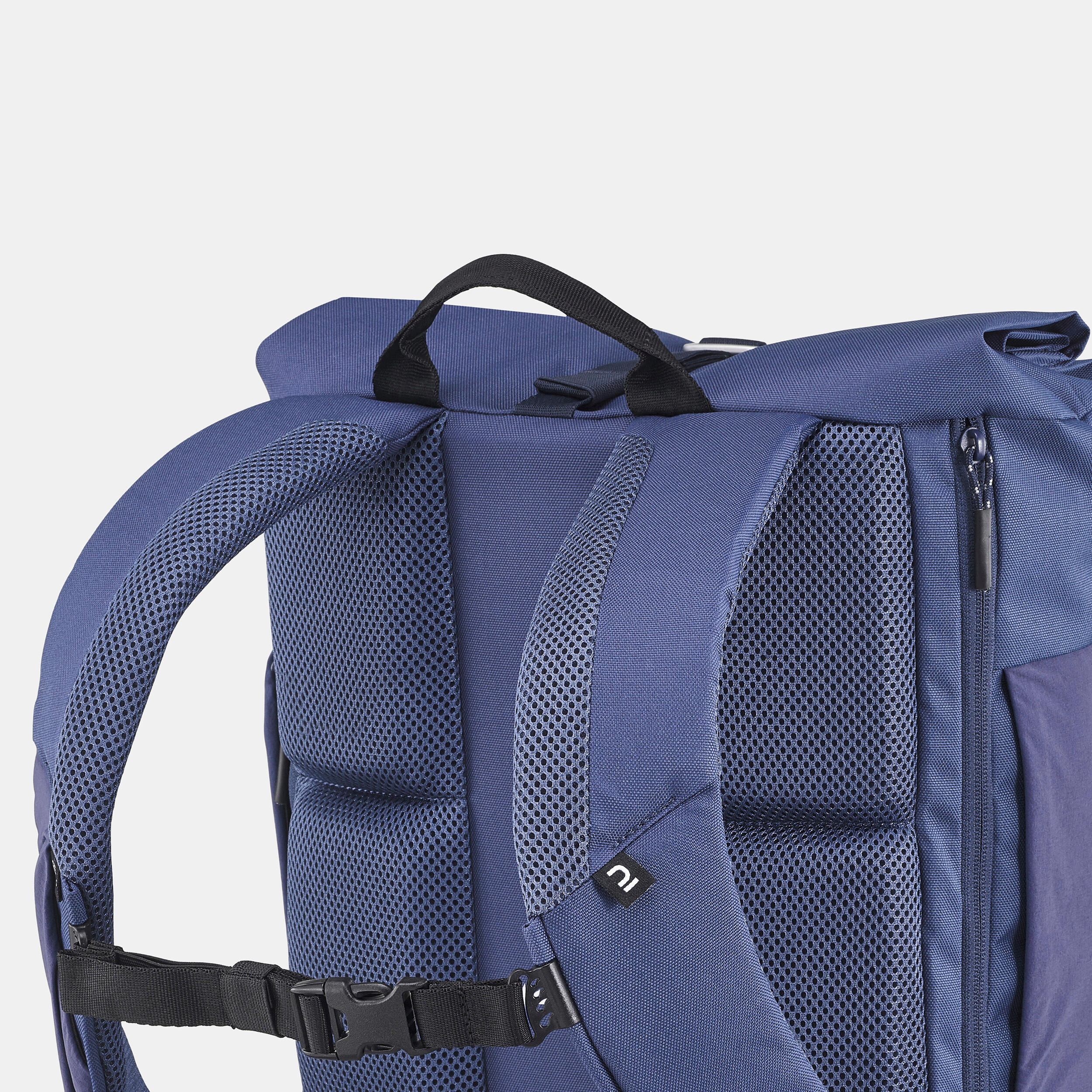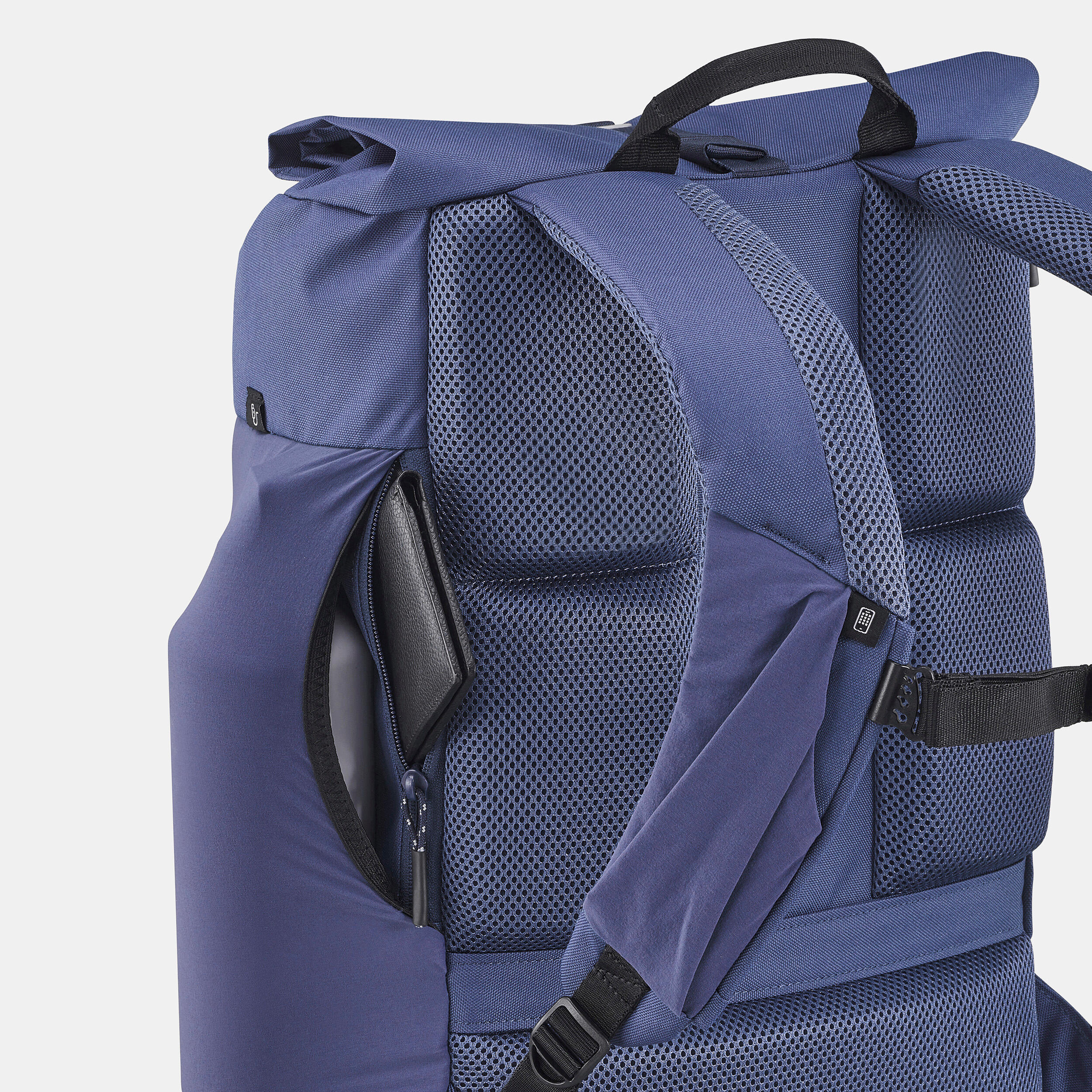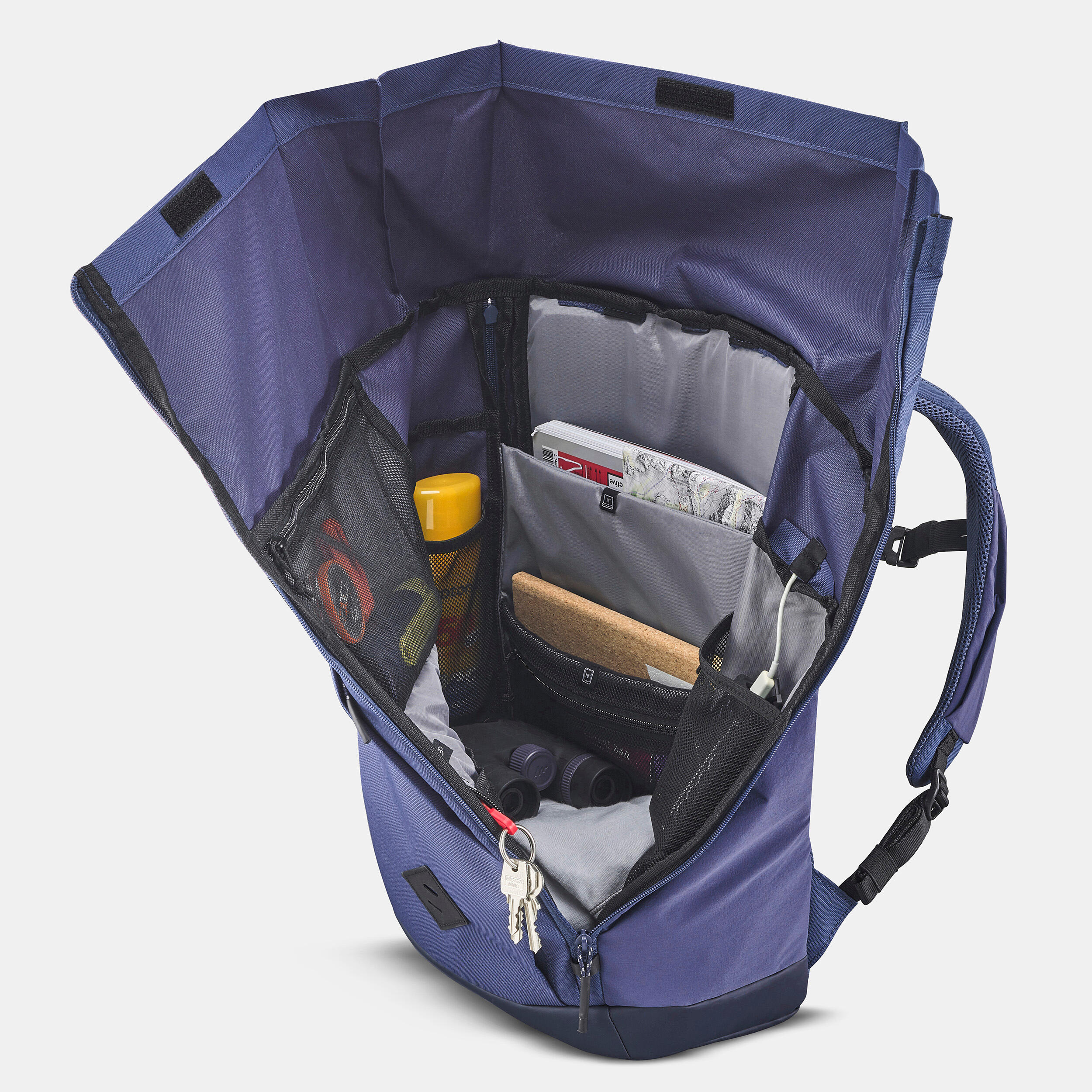 Τοποθετείστε τα βαριά αντικείμενα, π.χ. λάπτοπ, πικνίκ κ.λπ.στον πάτο και στις κατάλληλες θήκες και τυλίξτε τα ρούχα σας γύρω από αυτά. Στις τσέπες, τοποθετείστε τα μικρά αντικείμενα που χρησιμοποιείτε κατά τη διάρκεια της μέρας (αντηλιακό, χάρτης, γυαλιά ηλίου, κ.λπ.). Τοποθετείστε τα παγούρια στις ειδικές εξωτερικές τσέπες στο πλάι.