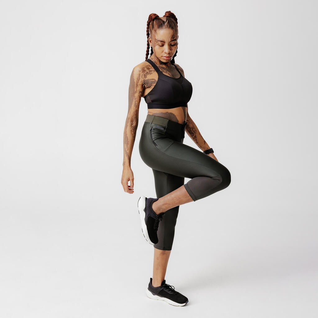 Γυναικείο διαπνέον κοντό κολάν για τρέξιμο run dry 500 - σκούρο χακί