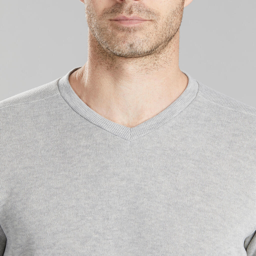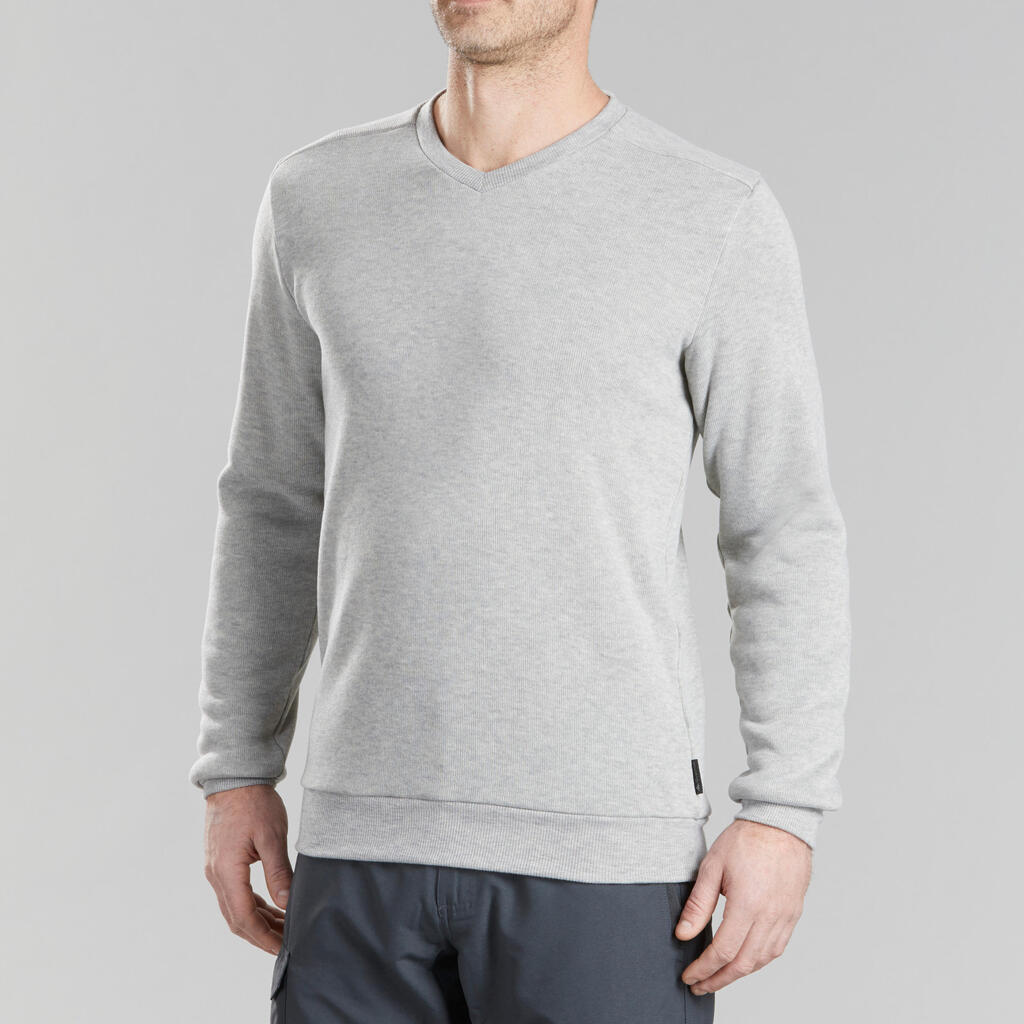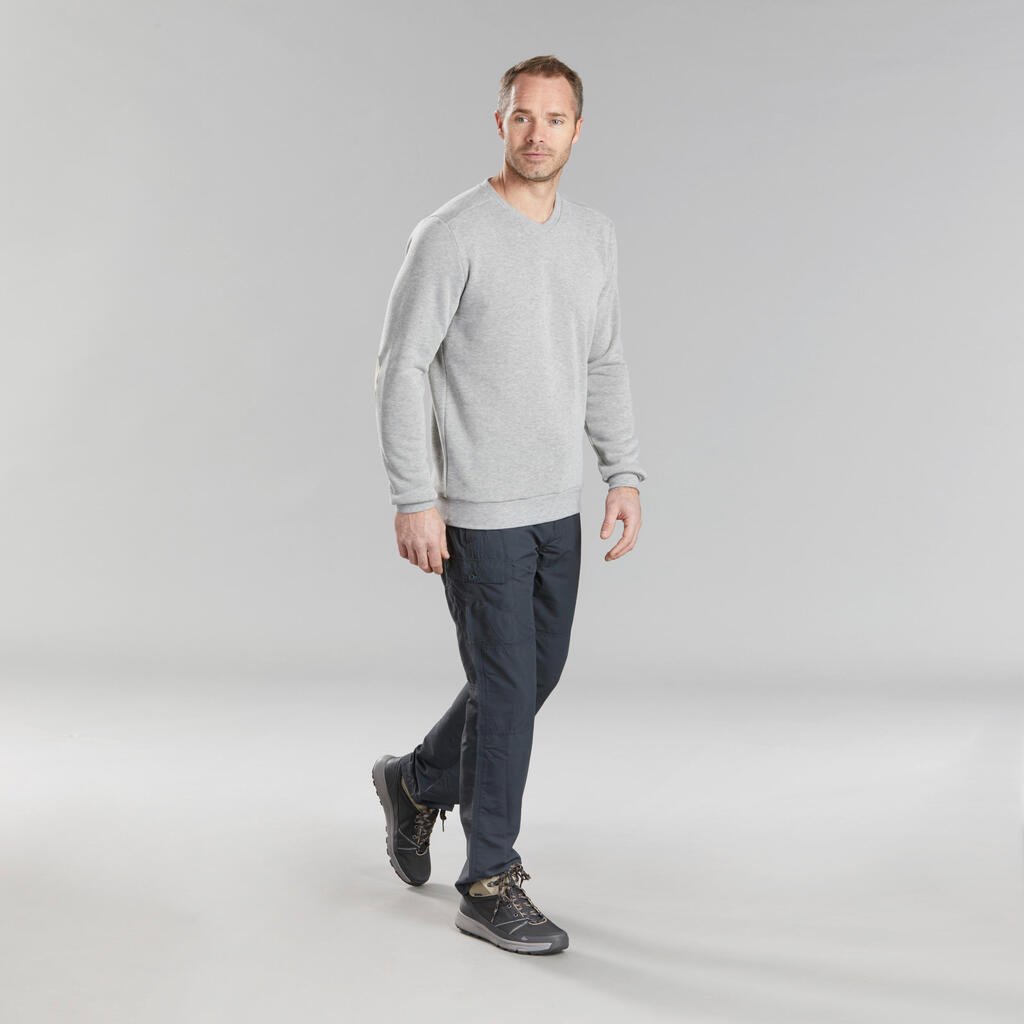 Αυτή η ζεστή ανδρική μπλούζα σάς προστατεύσει σε θερμοκρασίες από 10 έως 13°C κατά τις πεζοπορίες σας την άνοιξη και το φθινόπωρο. Προσφέρει μεγάλη άνεση χάρη στο πενιέ, απαλό υλικό της.Αρρενωπή γραμμή με λαιμόκοψη V.