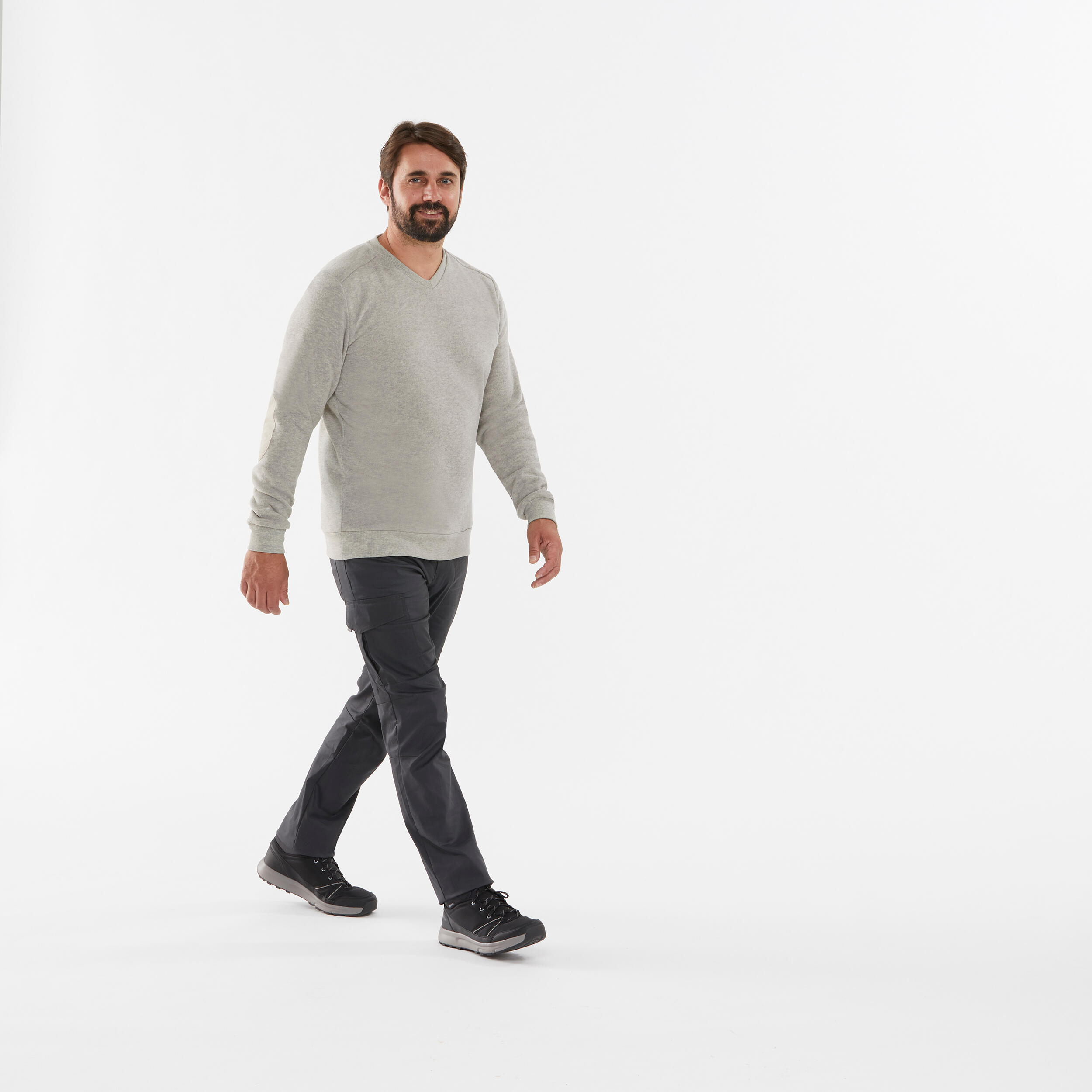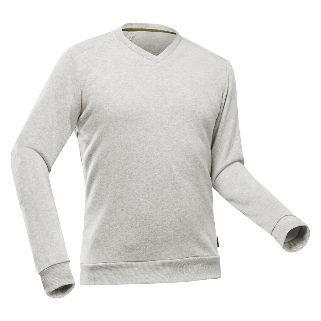 Αυτή η ζεστή ανδρική μπλούζα σάς προστατεύσει σε θερμοκρασίες από 10 έως 13°C κατά τις πεζοπορίες σας την άνοιξη και το φθινόπωρο. Προσφέρει μεγάλη άνεση χάρη στο πενιέ, απαλό υλικό της.Αρρενωπή γραμμή με λαιμόκοψη V.