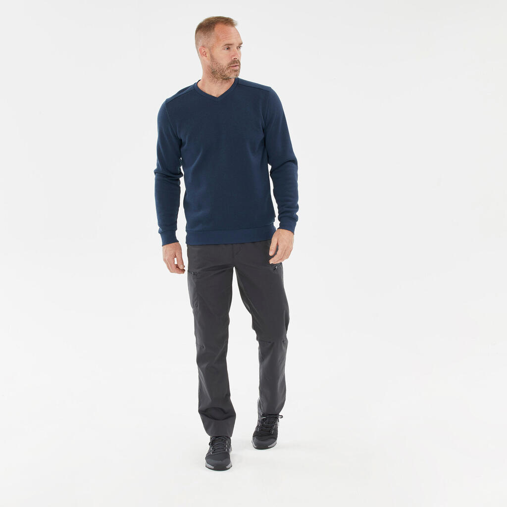Αυτή η ζεστή ανδρική μπλούζα σάς προστατεύσει σε θερμοκρασίες από 10 έως 13°C κατά τις πεζοπορίες σας την άνοιξη και το φθινόπωρο. Προσφέρει μεγάλη άνεση χάρη στο πενιέ, απαλό υλικό της.Αρρενωπή γραμμή με λαιμόκοψη V.
