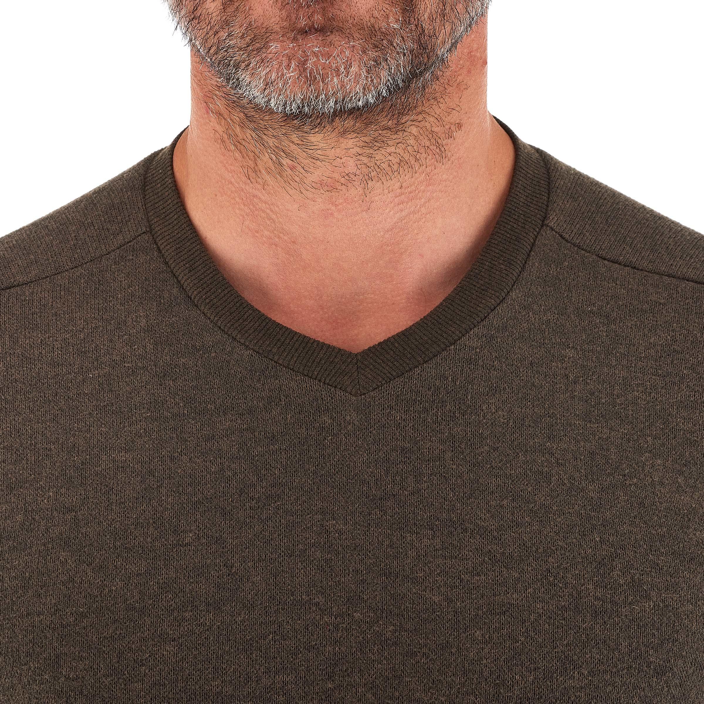 Αυτή η ζεστή ανδρική μπλούζα σάς προστατεύσει σε θερμοκρασίες από 10 έως 13°C κατά τις πεζοπορίες σας την άνοιξη και το φθινόπωρο. Προσφέρει μεγάλη άνεση χάρη στο πενιέ, απαλό υλικό της.Αρρενωπή γραμμή με λαιμόκοψη V.