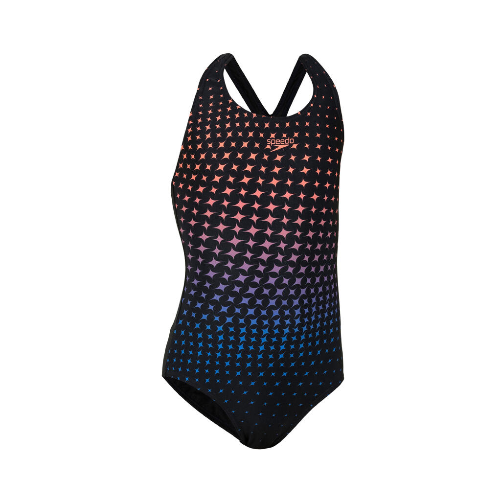 Κοριτσίστικο ολόσωμο μαγιό speedo splashback - μαύρο/τύπωμα αστέρια