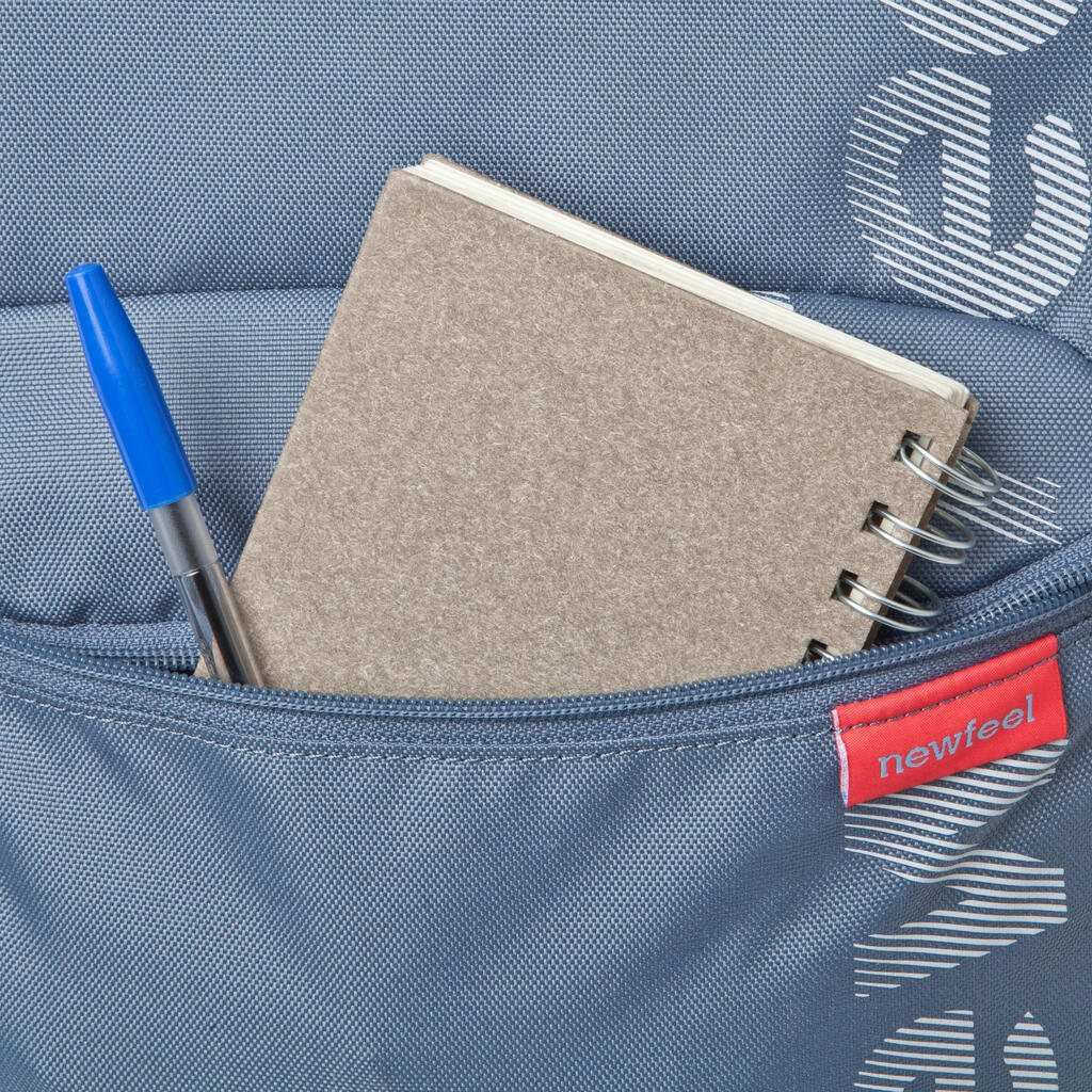 Abeona 140 20L, practical and strong with handy storage: main compartment, zipped front and inside pockets, netting side bottle pockets. With adjustable padded straps