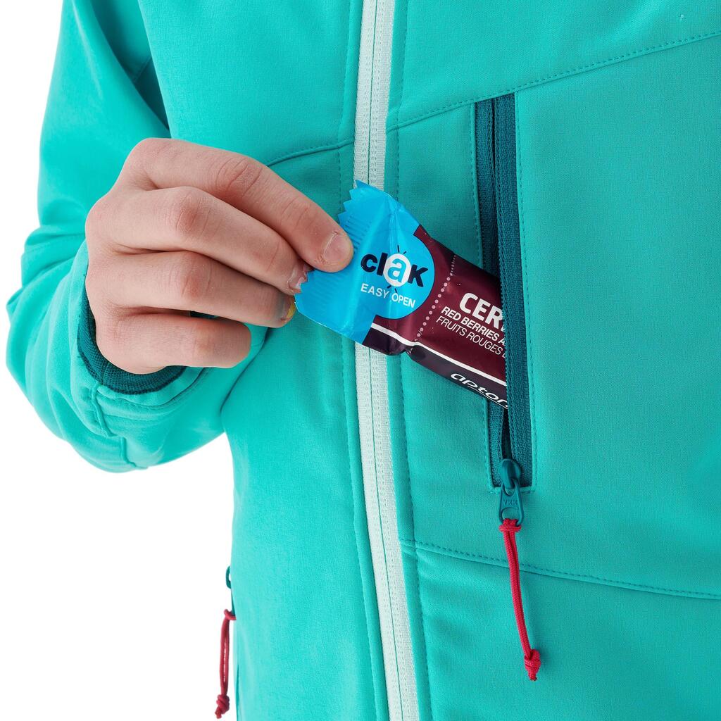 Finally, the ideal softshell jacket for young hikers, soft on the inside, but still windproof and water-repellant.