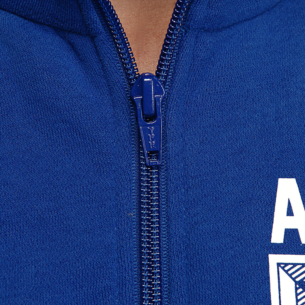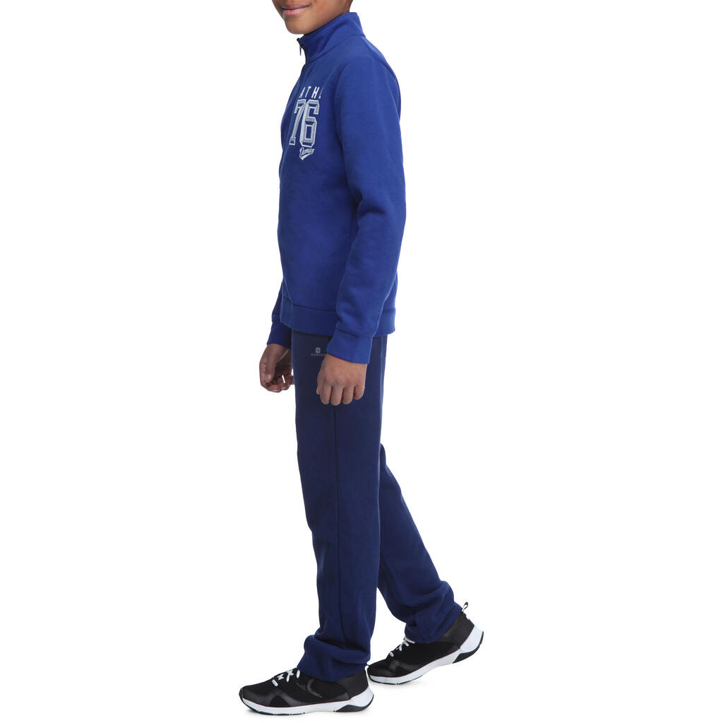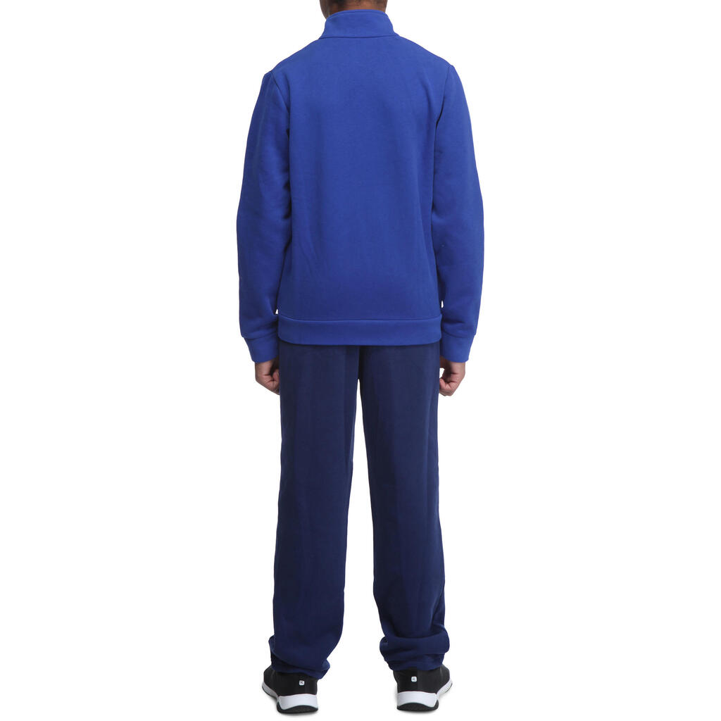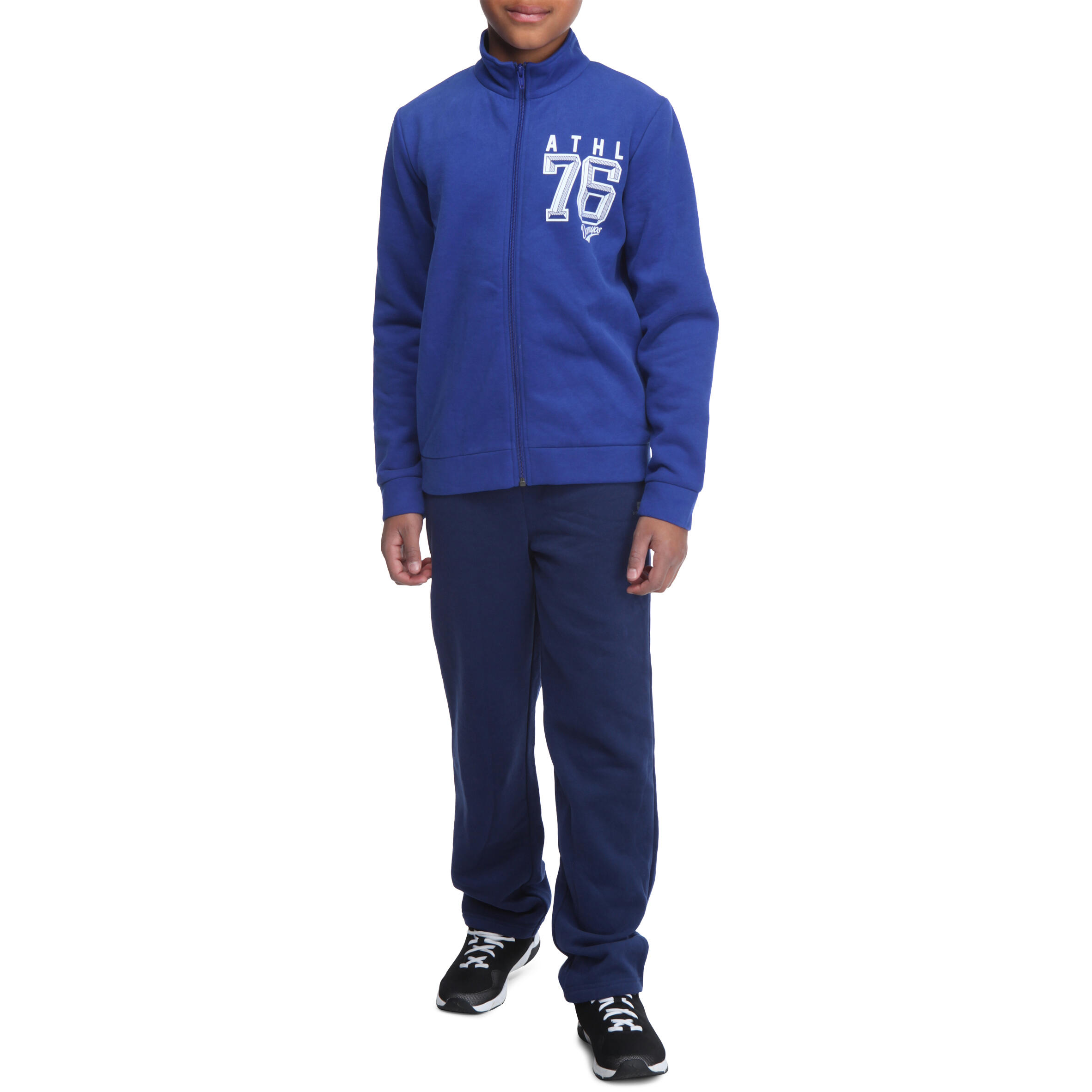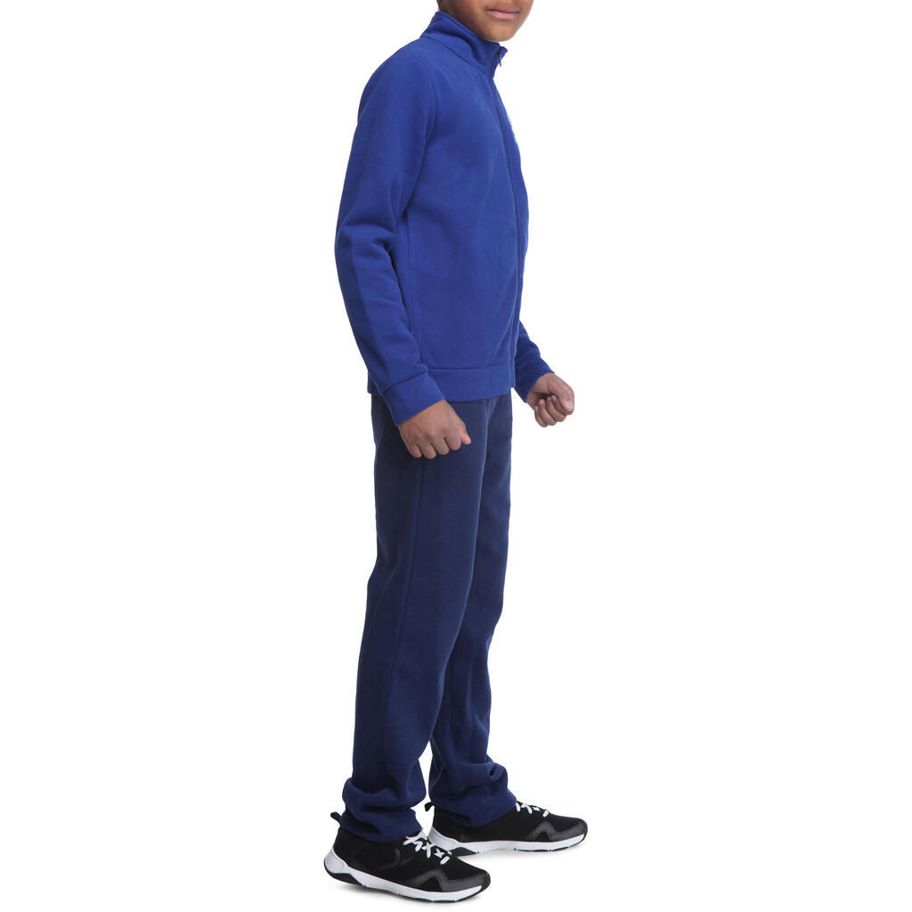 This tracksuit is composed of brushed jersey bottoms and a zip-up jacket.